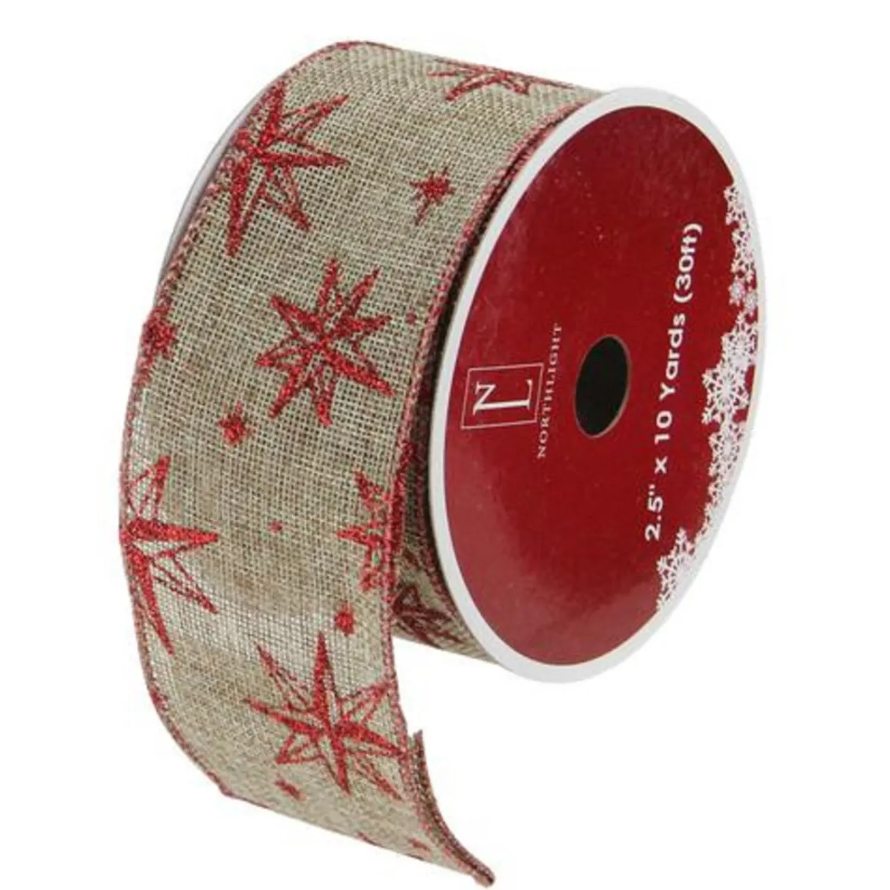 - Red And Beige Star Wired Christmas Craft Ribbons