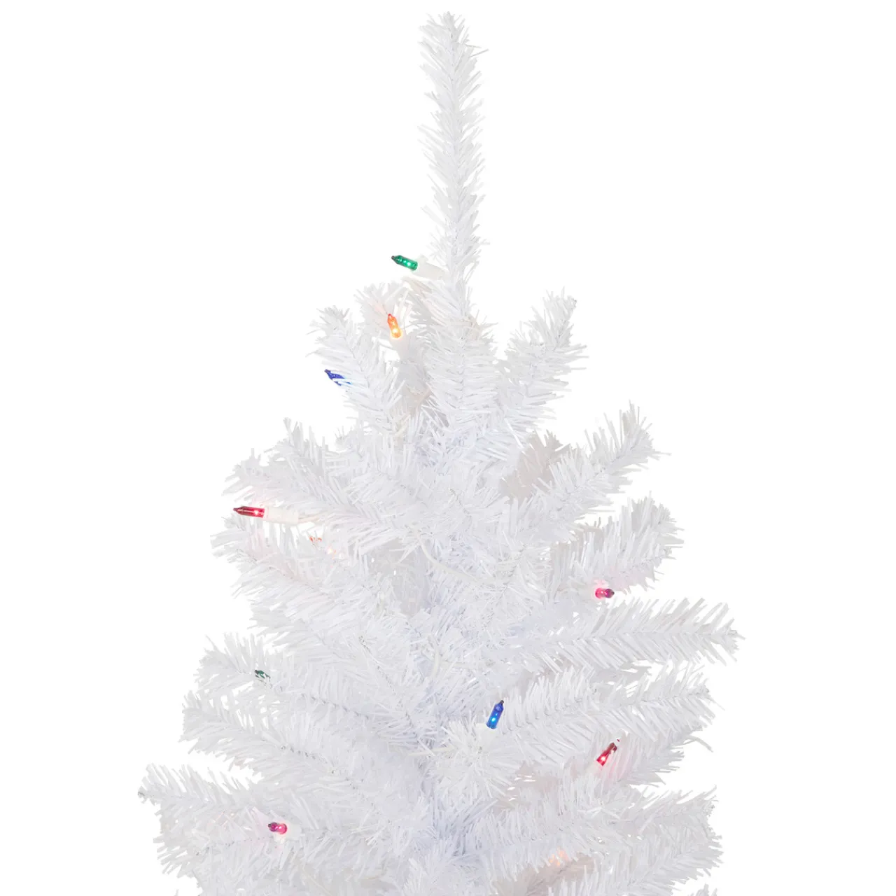- Lighted with 50 multicolor incandescent mini lights; 187 branch tips
