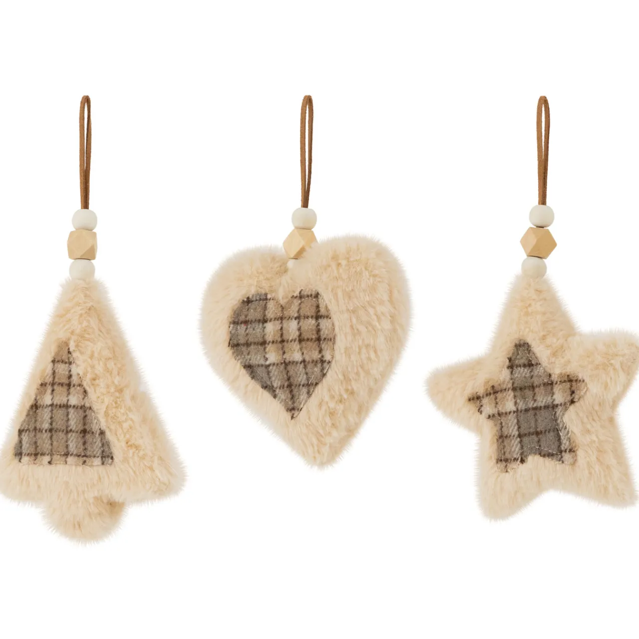 - Set Of 3 Rustic Plaid Christmas Ornaments