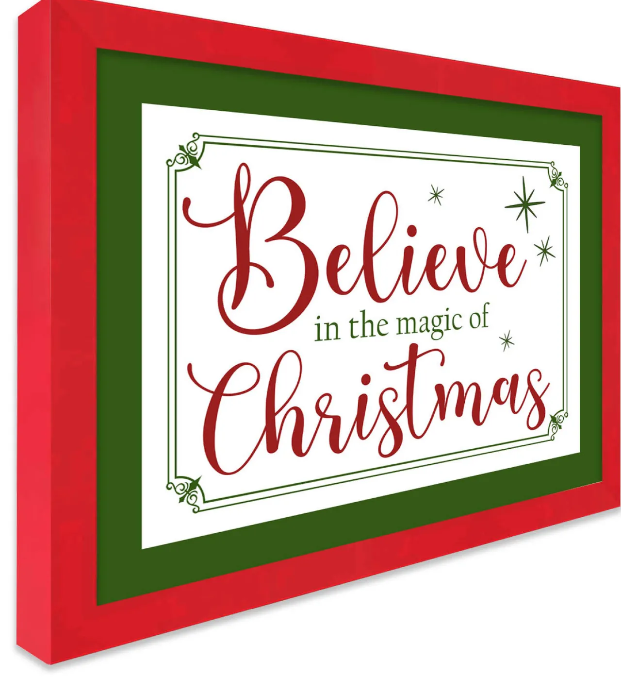 - 12.5″ x 16.5″ Red and Green Believe in the Magic of Christmas printed sign on musuem quality matte paper with archval inks.
