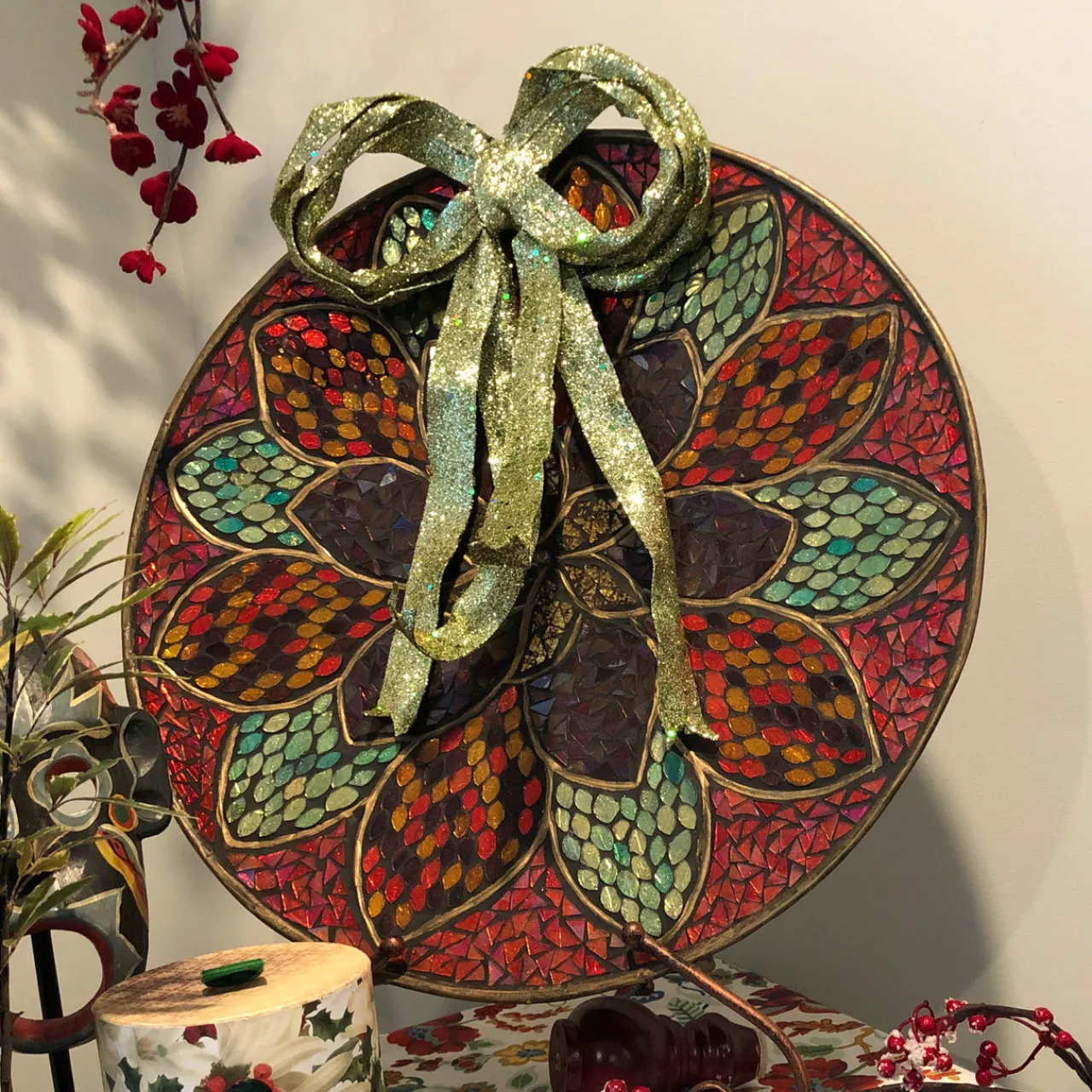 - Green Drenched Bow Christmas Decor