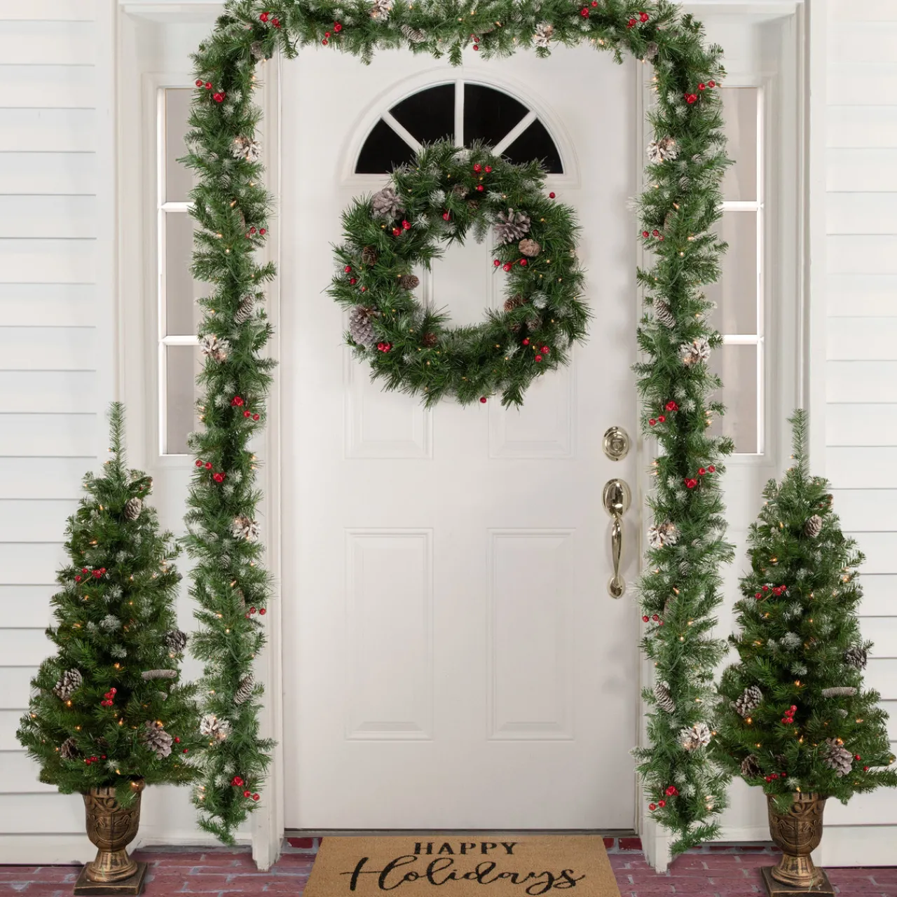- Frosted Verona Berry Pine Artificial Christmas Entryway Trees, Garland And Wreath Set
