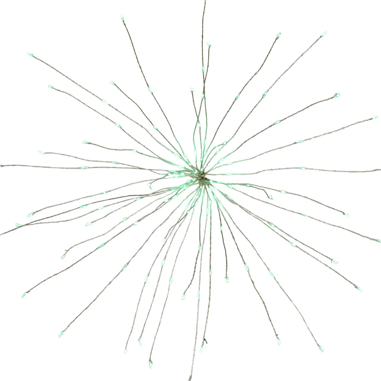 - Silver Wire Glitter Green Lighted Firework Christmas Decoration