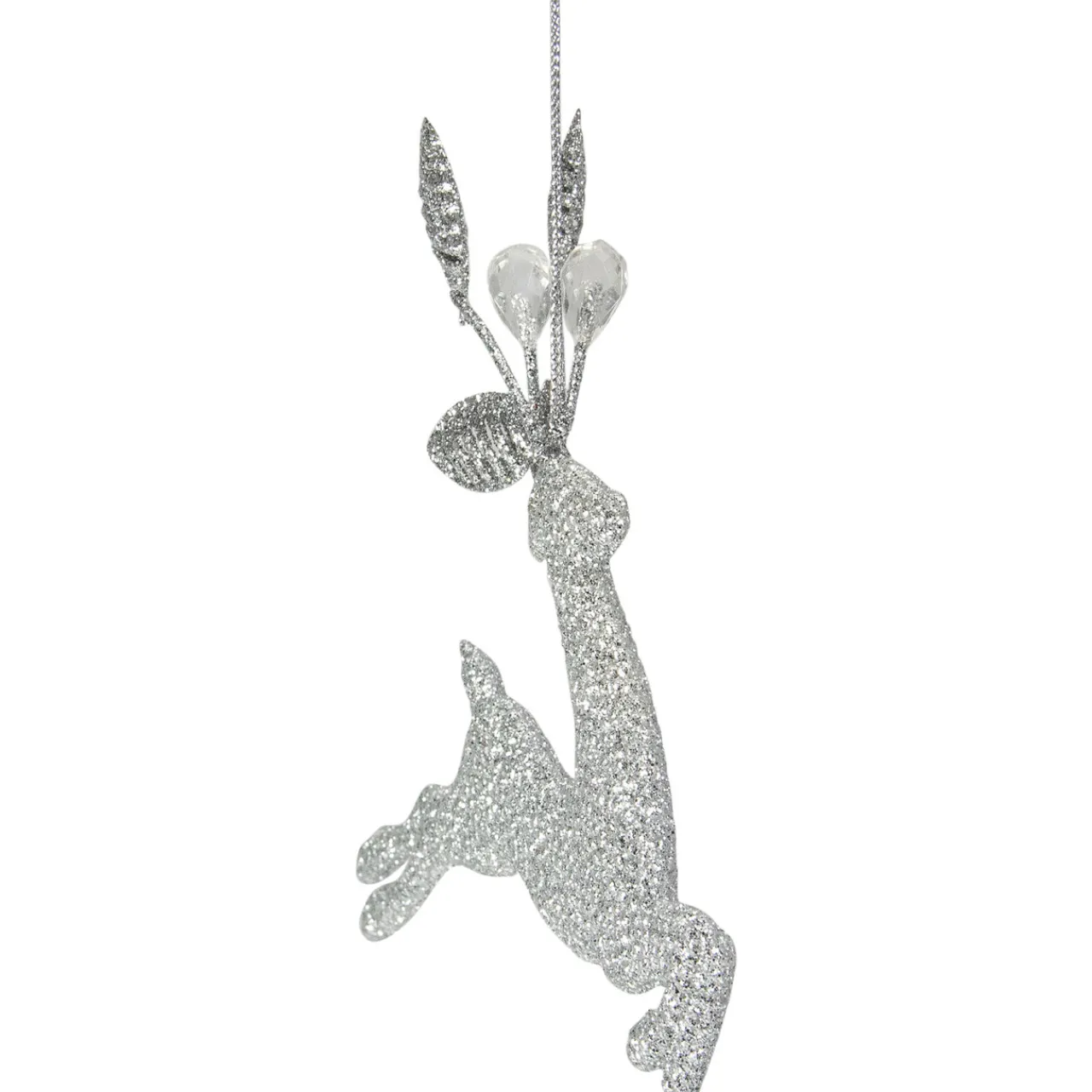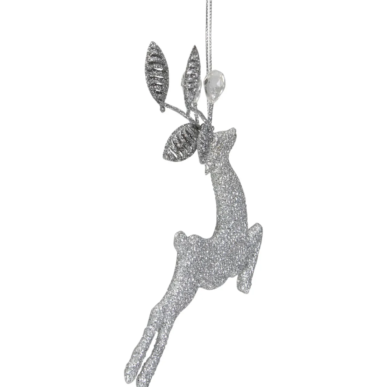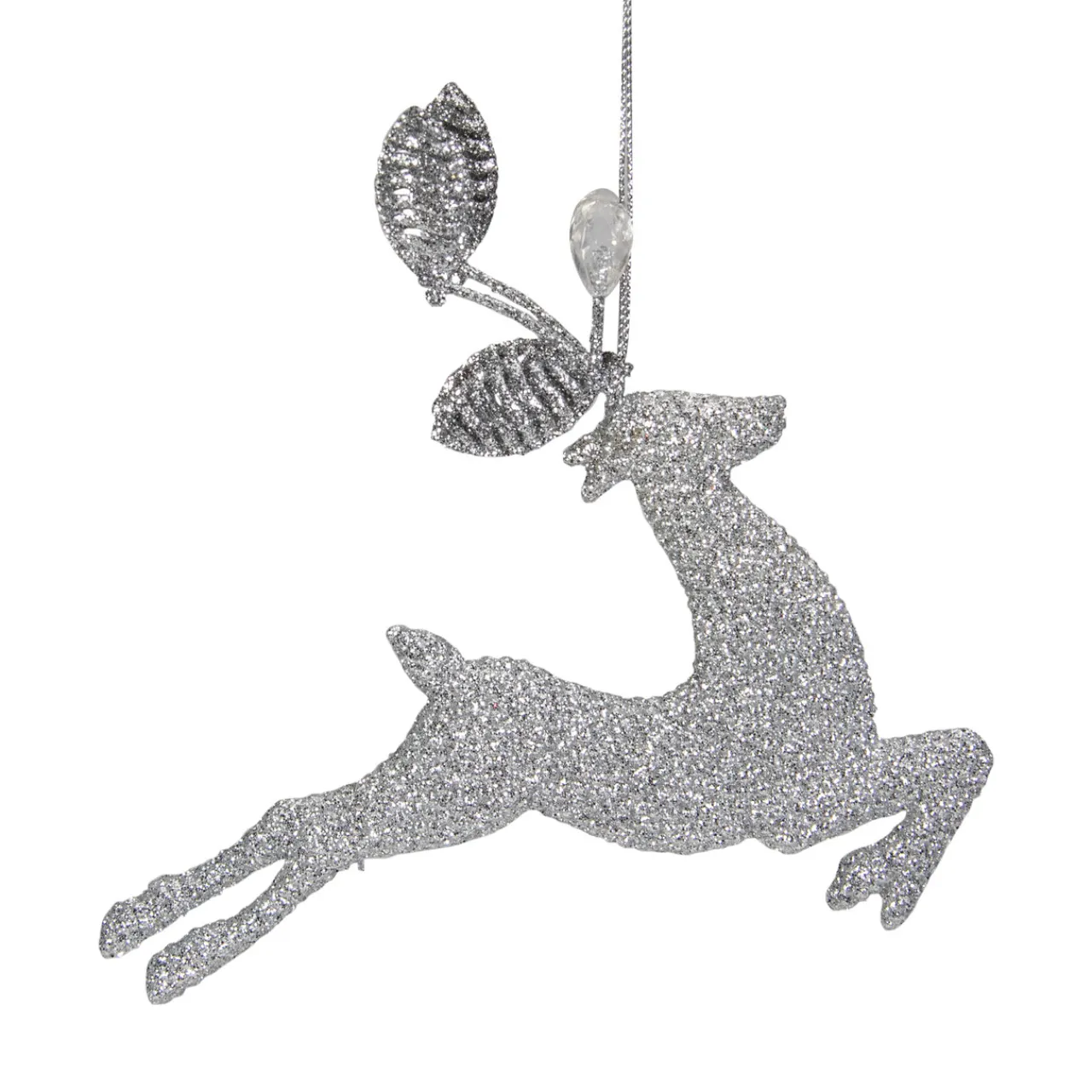 - Silver Glitter Leaping Reindeer Christmas Ornament
