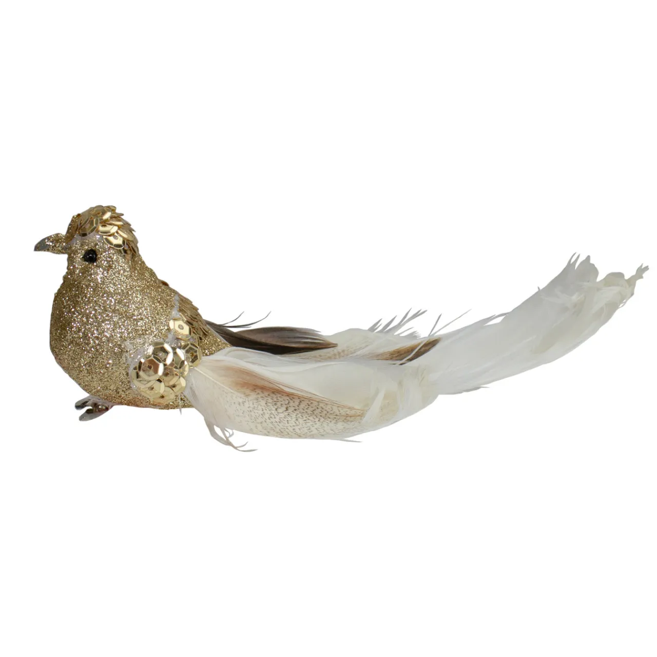 - Small Gold Bird With Faux Feather Tail Christmas Ornament