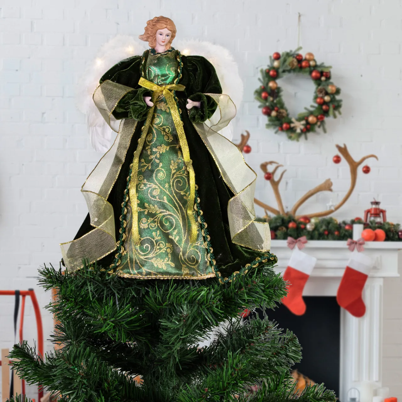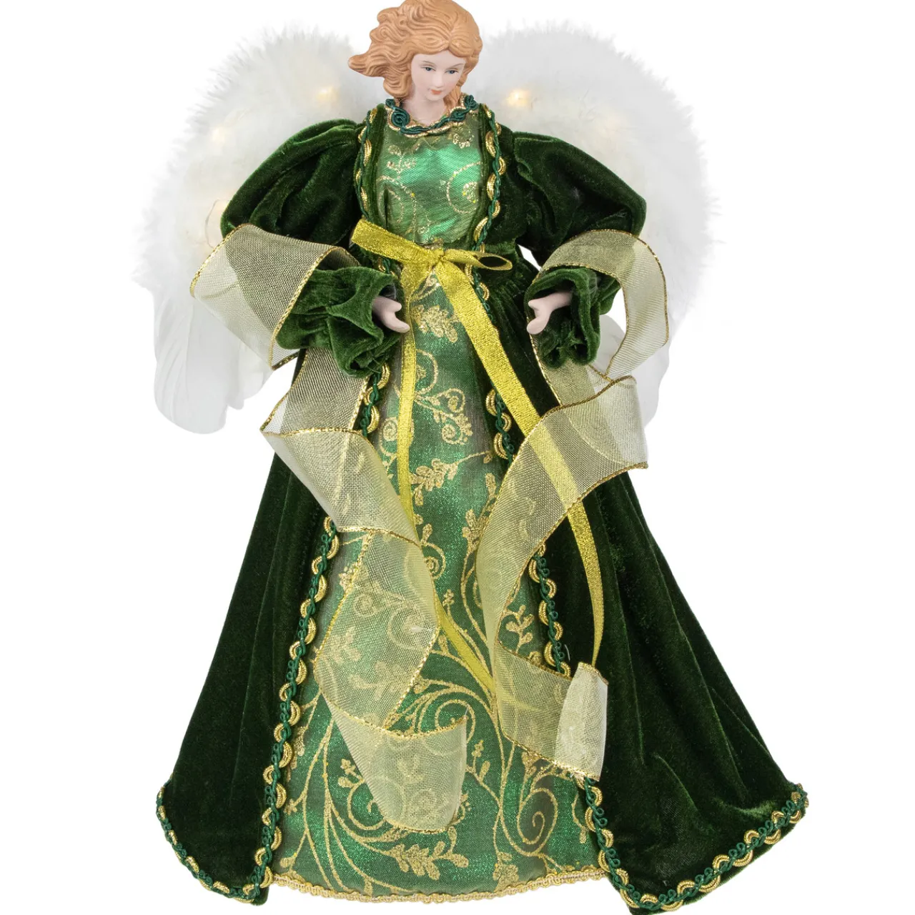 - Battery Operated Green And Gold Angel Tree Topper