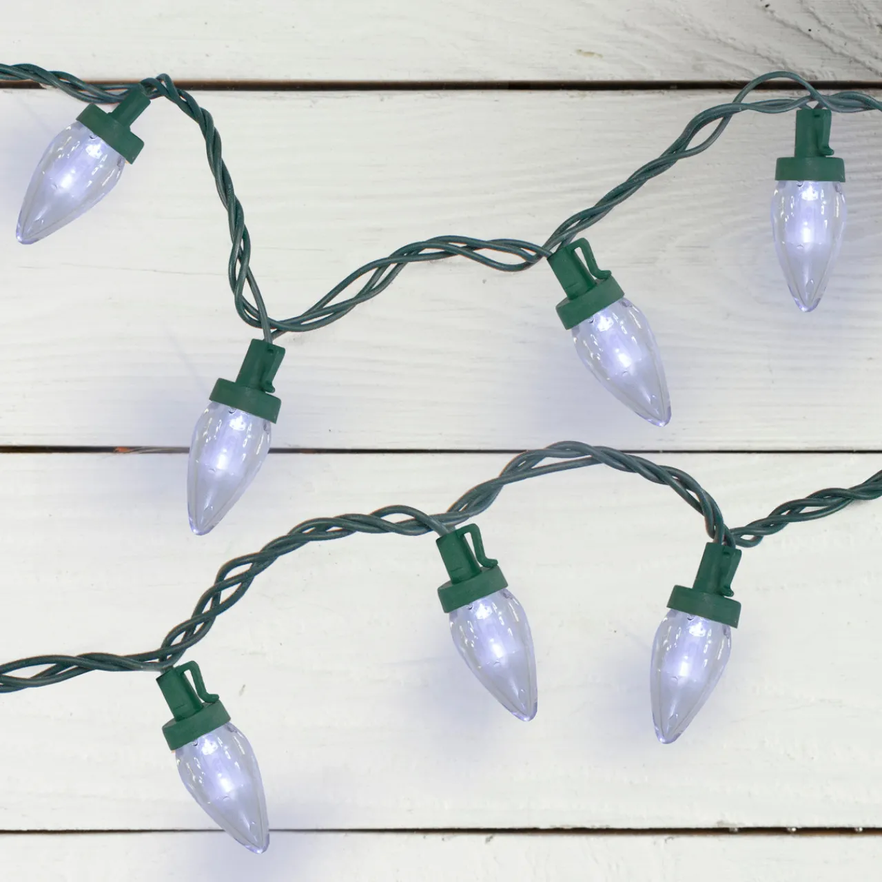 - Set Of 50 Pure White C7 Led Christmas Lights On White Wire
