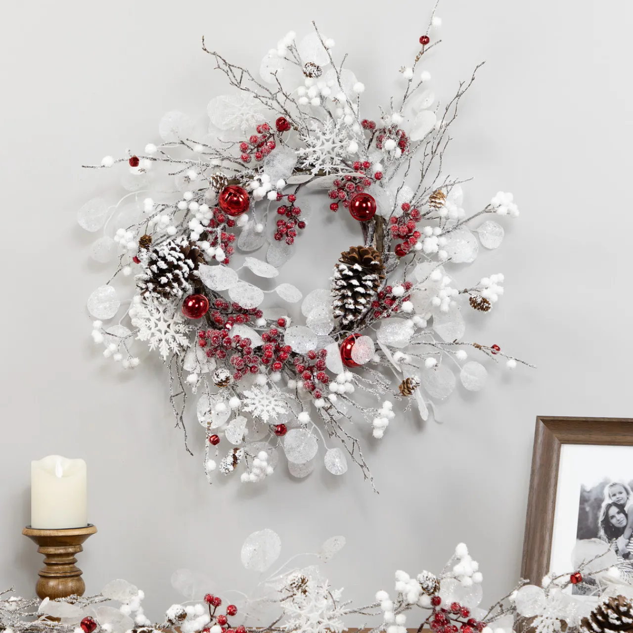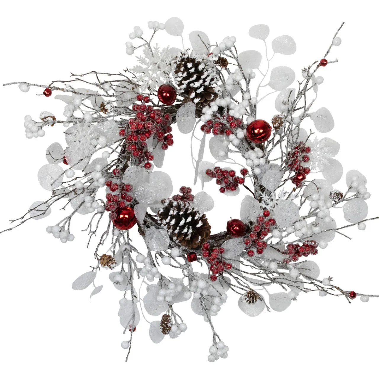 - Features twigs; pinecones; berries and jingle bells