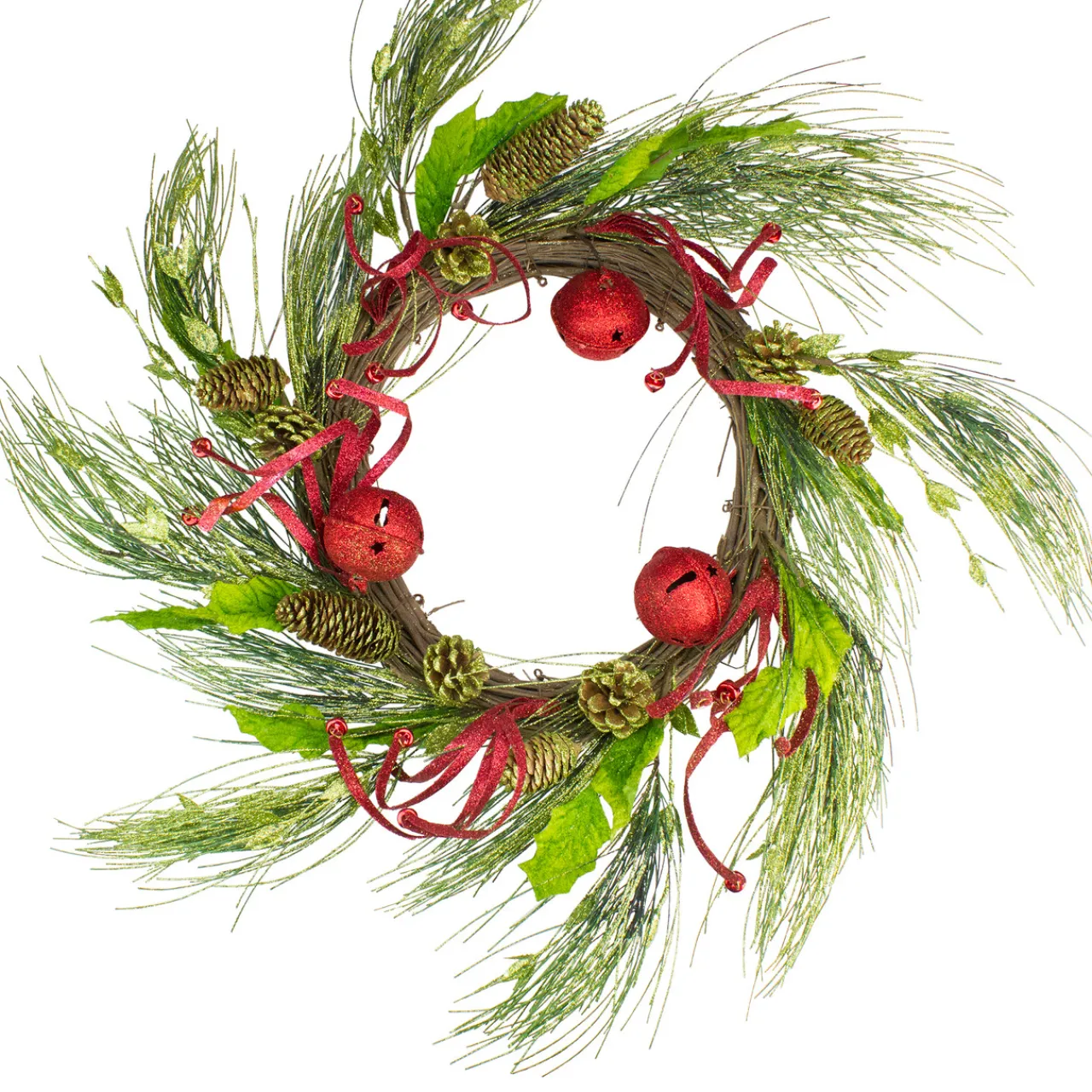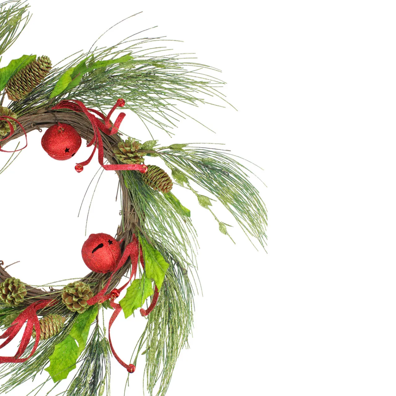 - Unlit Christmas Red And Green Jingle Bell Glitter Artificial Wreath