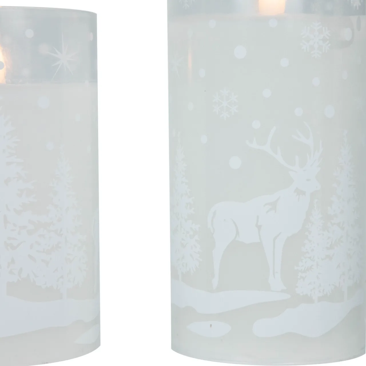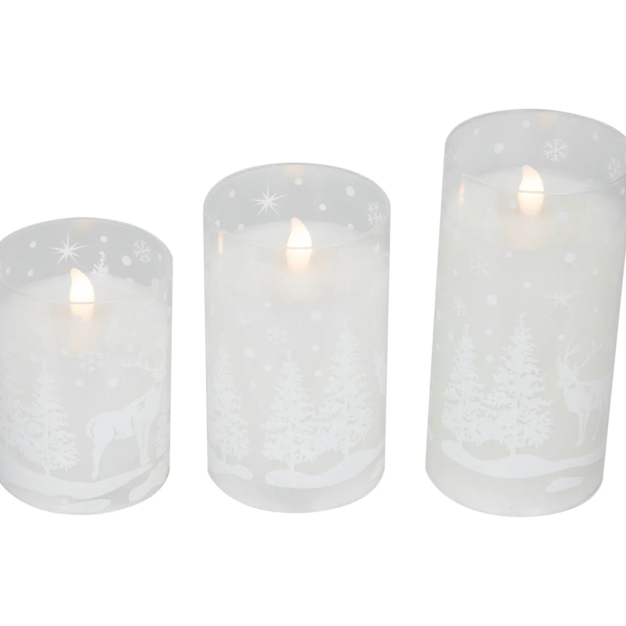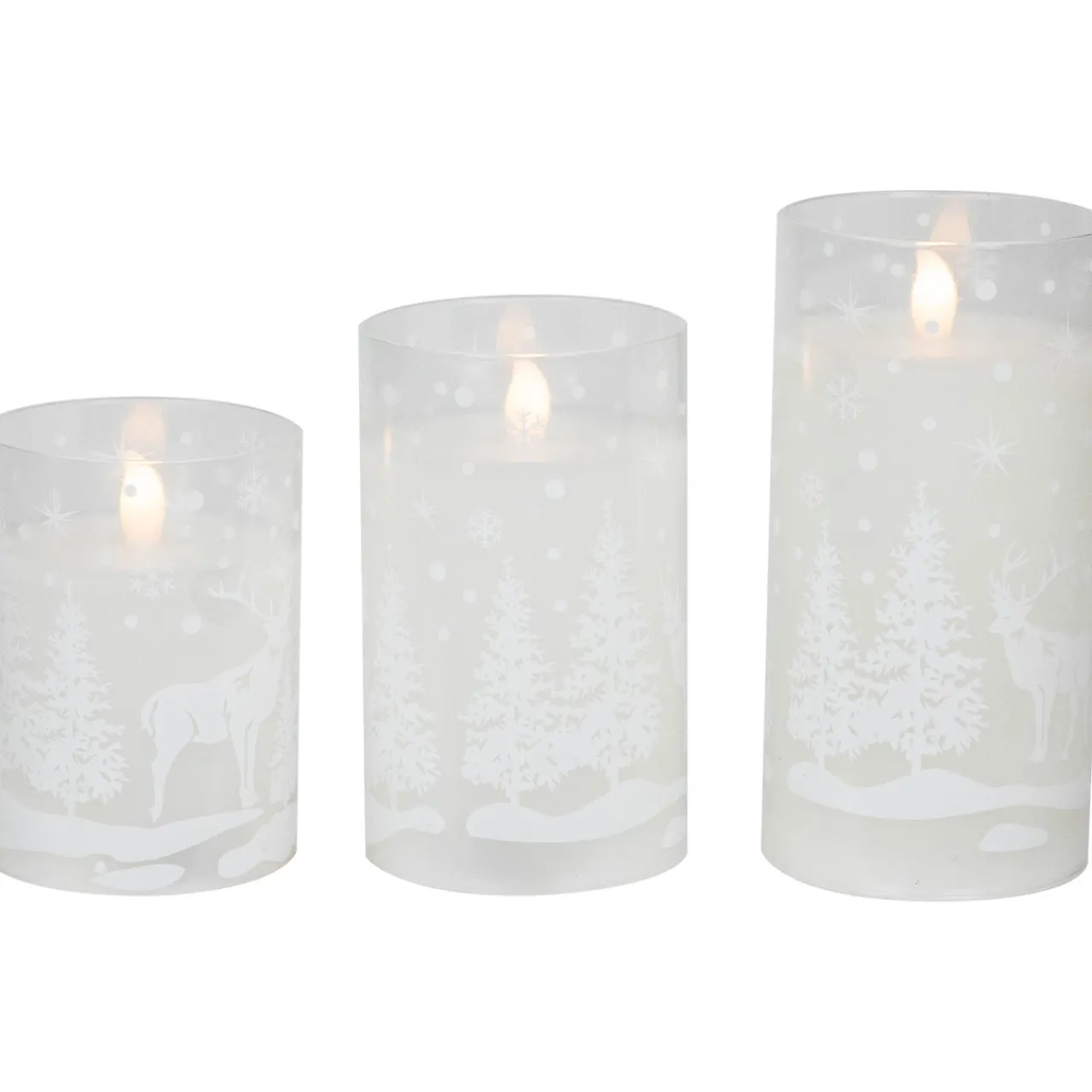 - Set Of 3 Woodland Flameless Christmas Pillar Candles