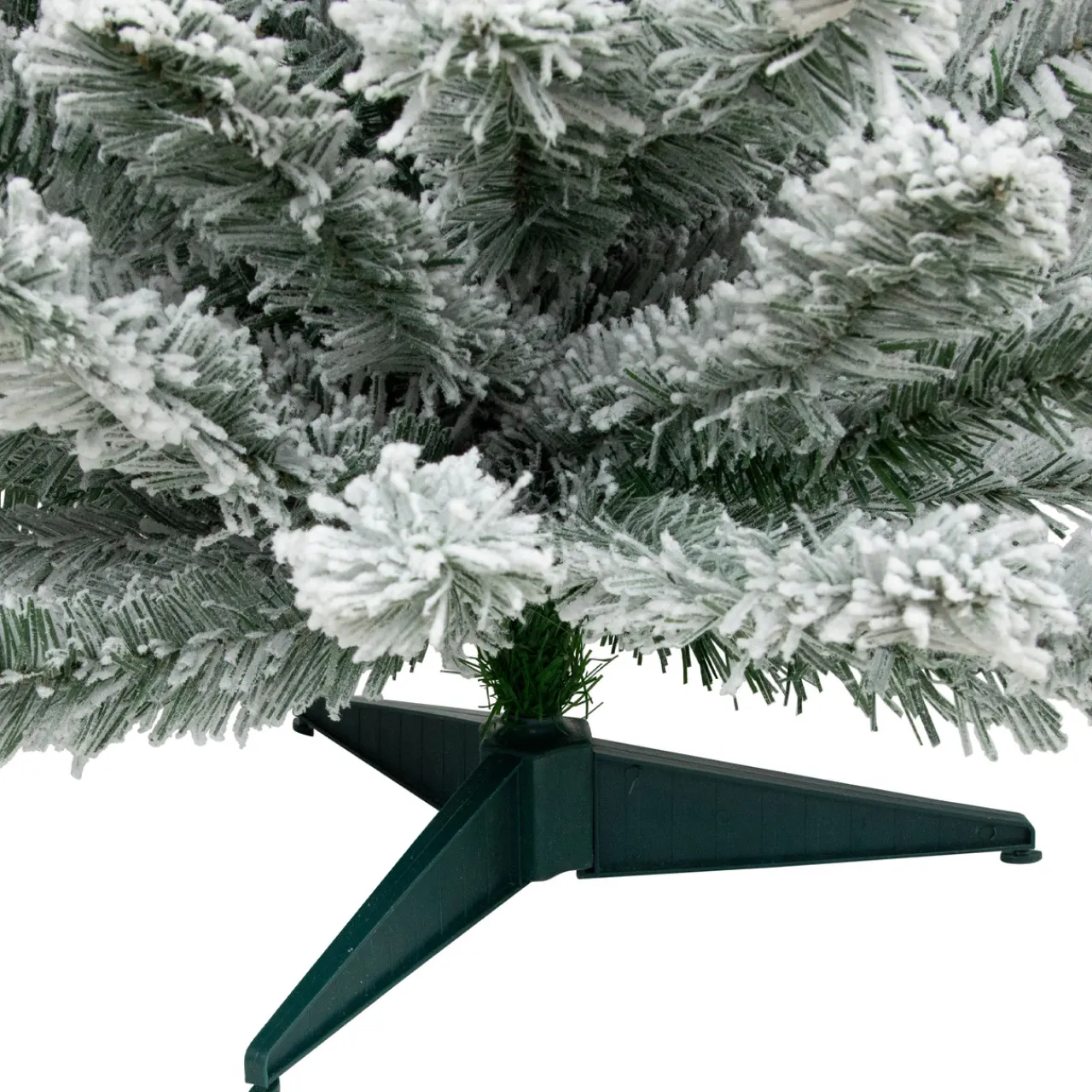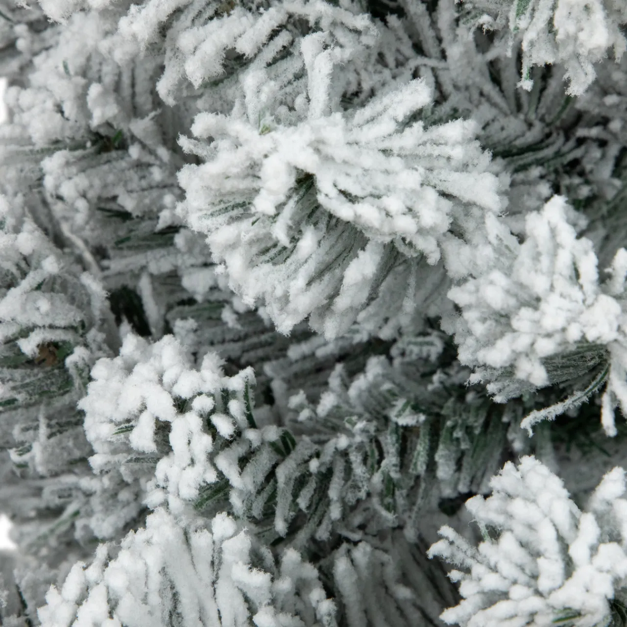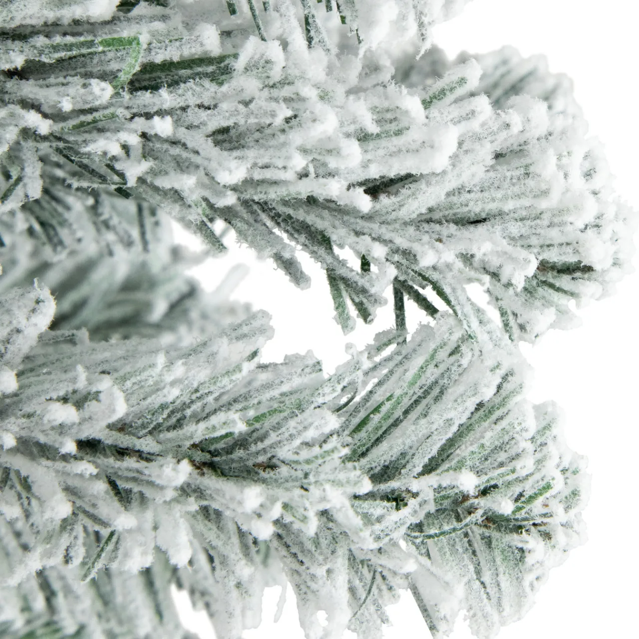 - Heavy white flocking on 2.5 inches wide green pine needles