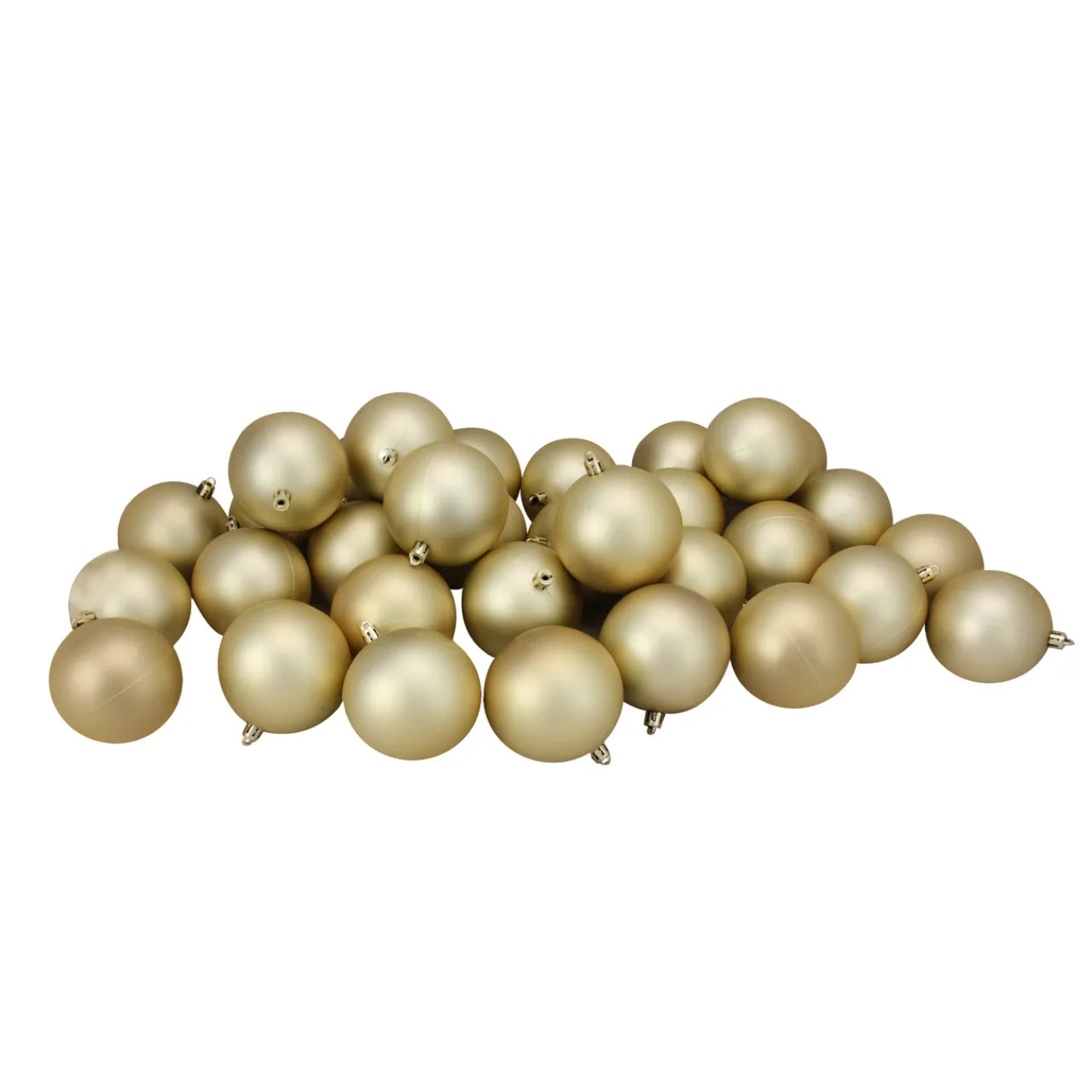 - 32 Count Champagne Gold Shatterproof Christmas Ball Ornaments