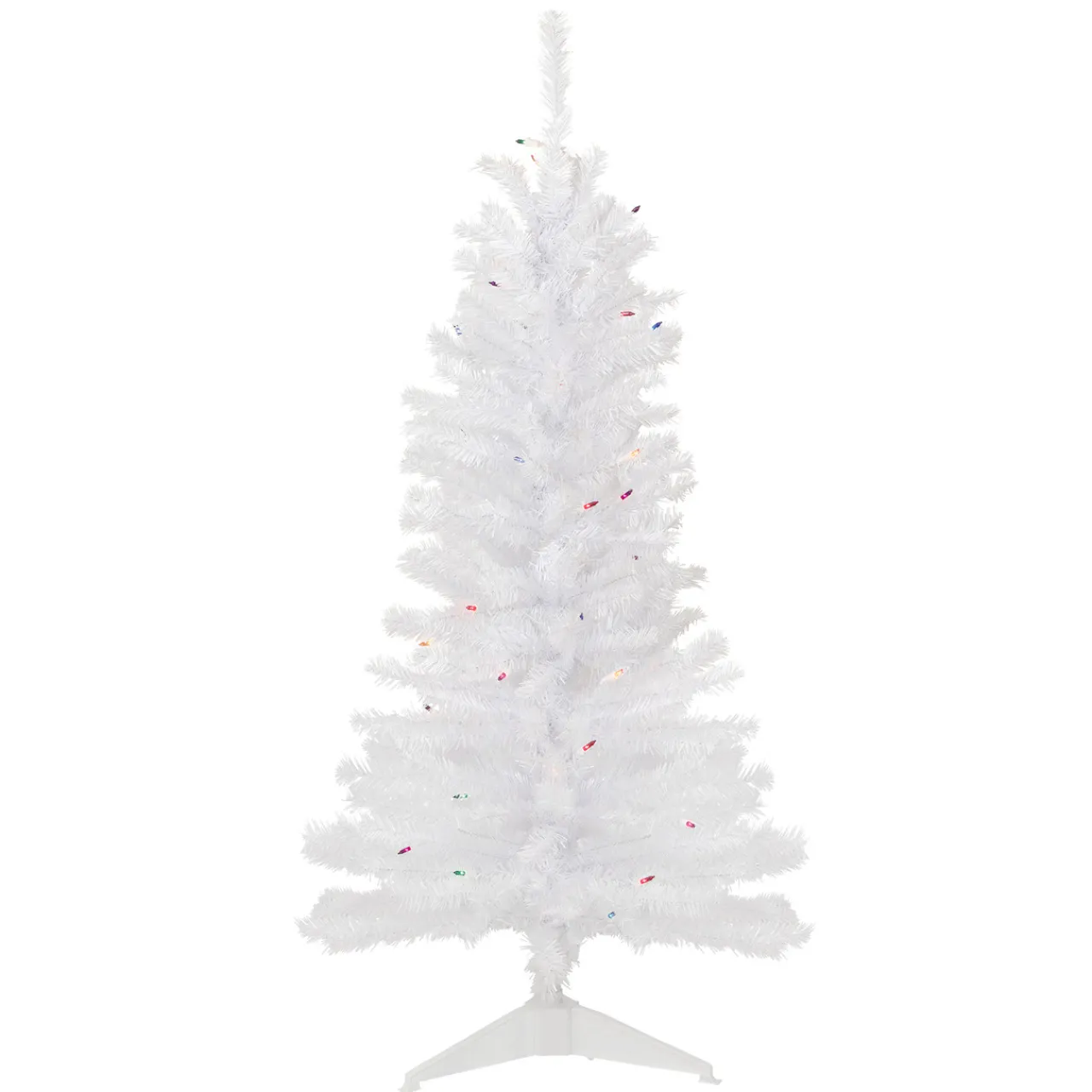 - Lighted with 50 multicolor incandescent mini lights; 187 branch tips