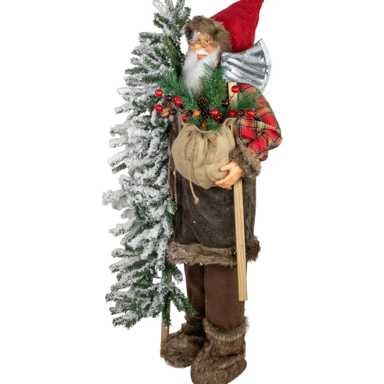 - Rustic Standing Santa Claus With Alpine Christmas Tree Figure