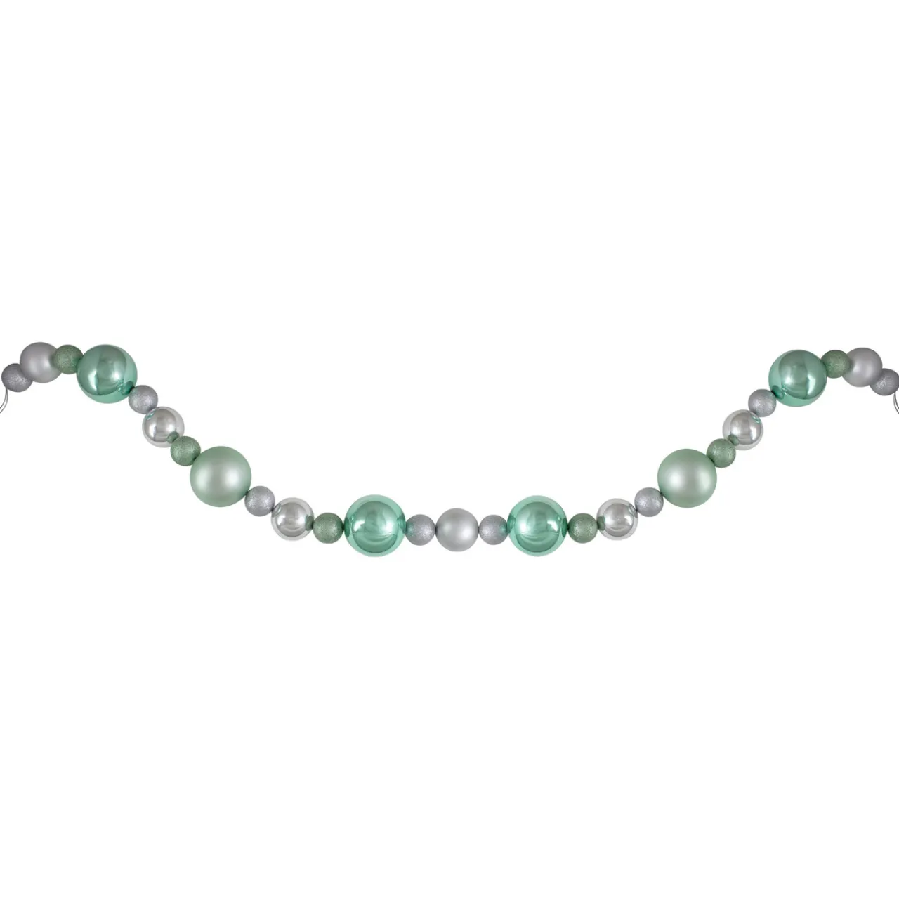 - Seafoam Green And Silver Shatterproof Ball Christmas Garland