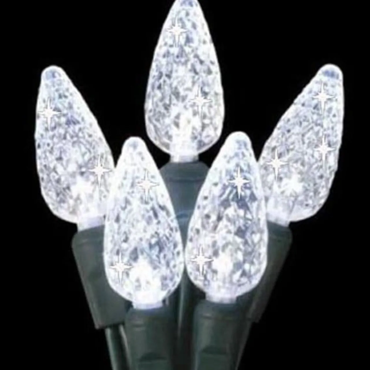 - Pure White C6 Twinkling Led Christmas String Lights With Green Wire