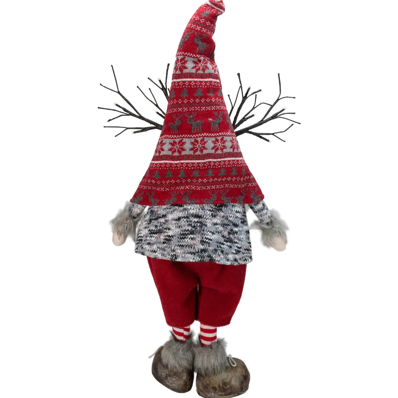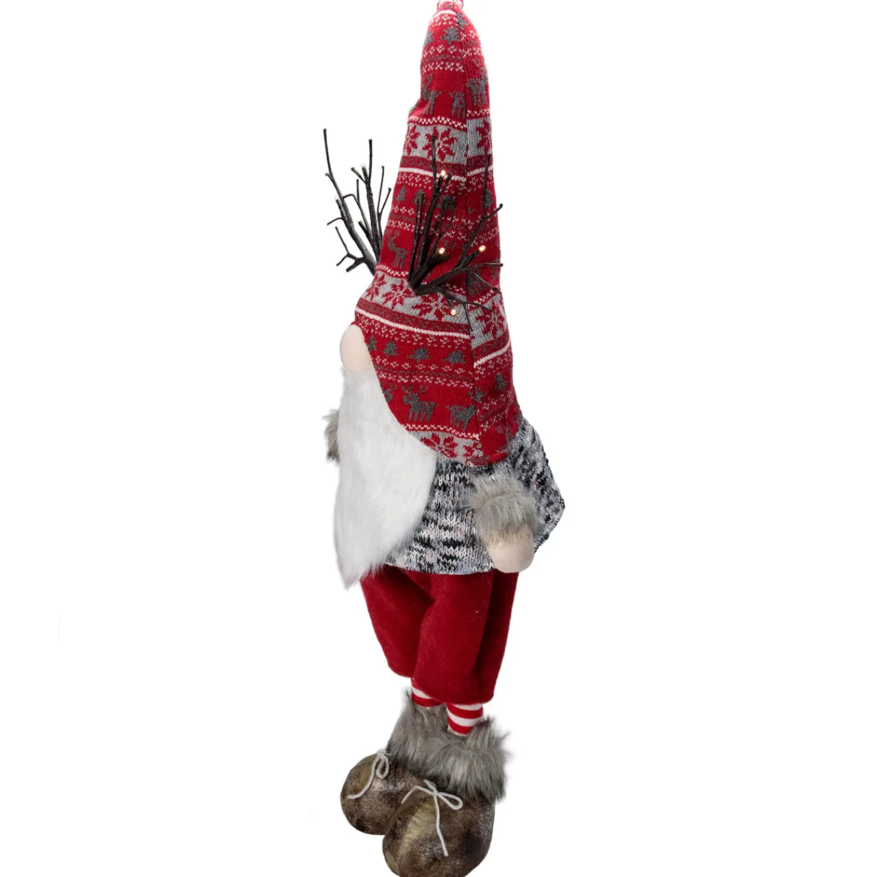 - Standing Tabletop Gray And Red Gnome Christmas Decoration