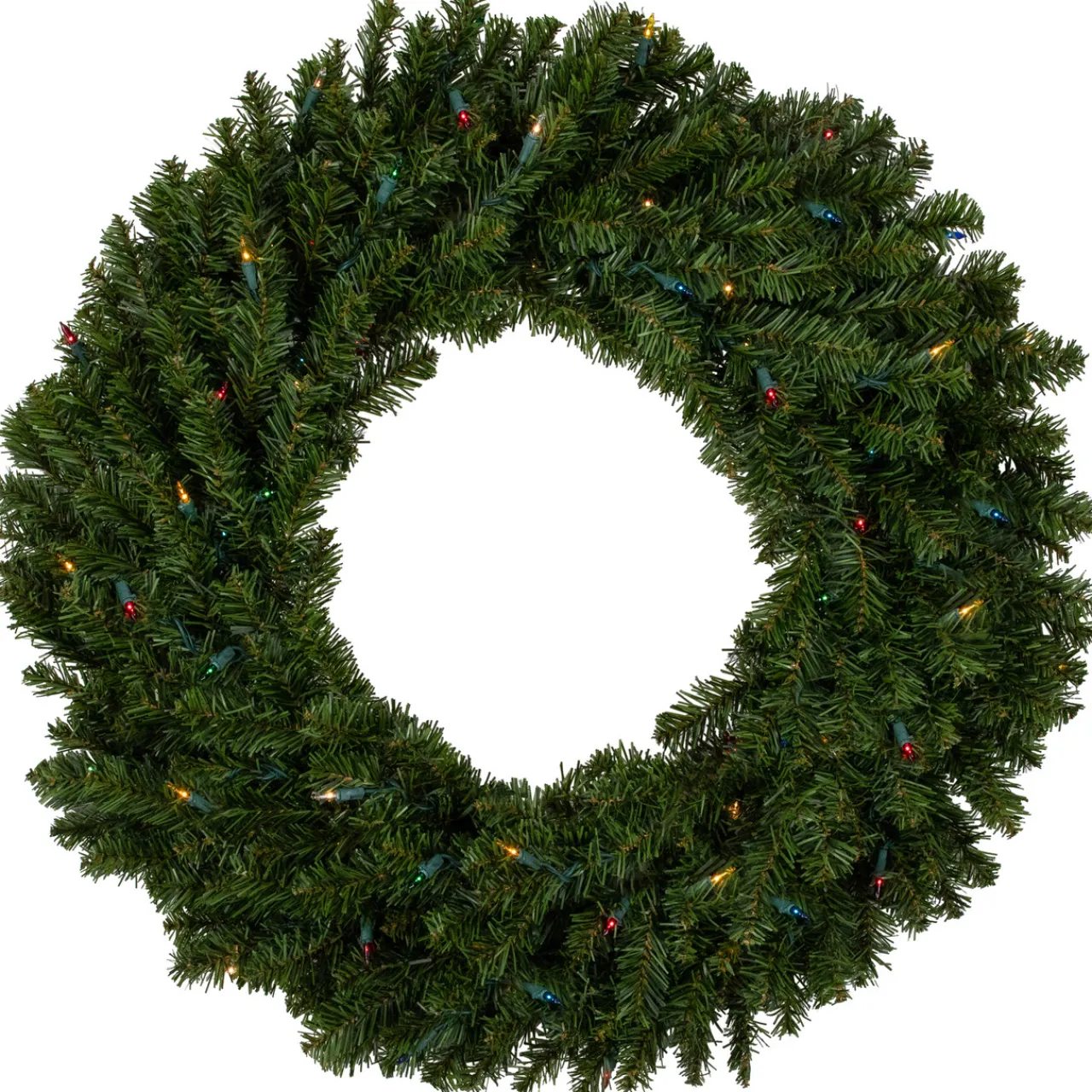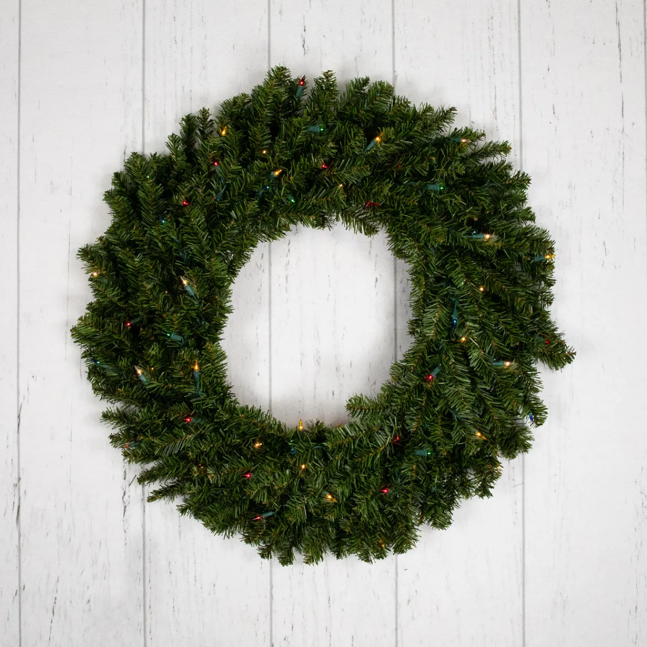 - Canadian Pine Artificial Christmas Wreath With Multicolor Lights