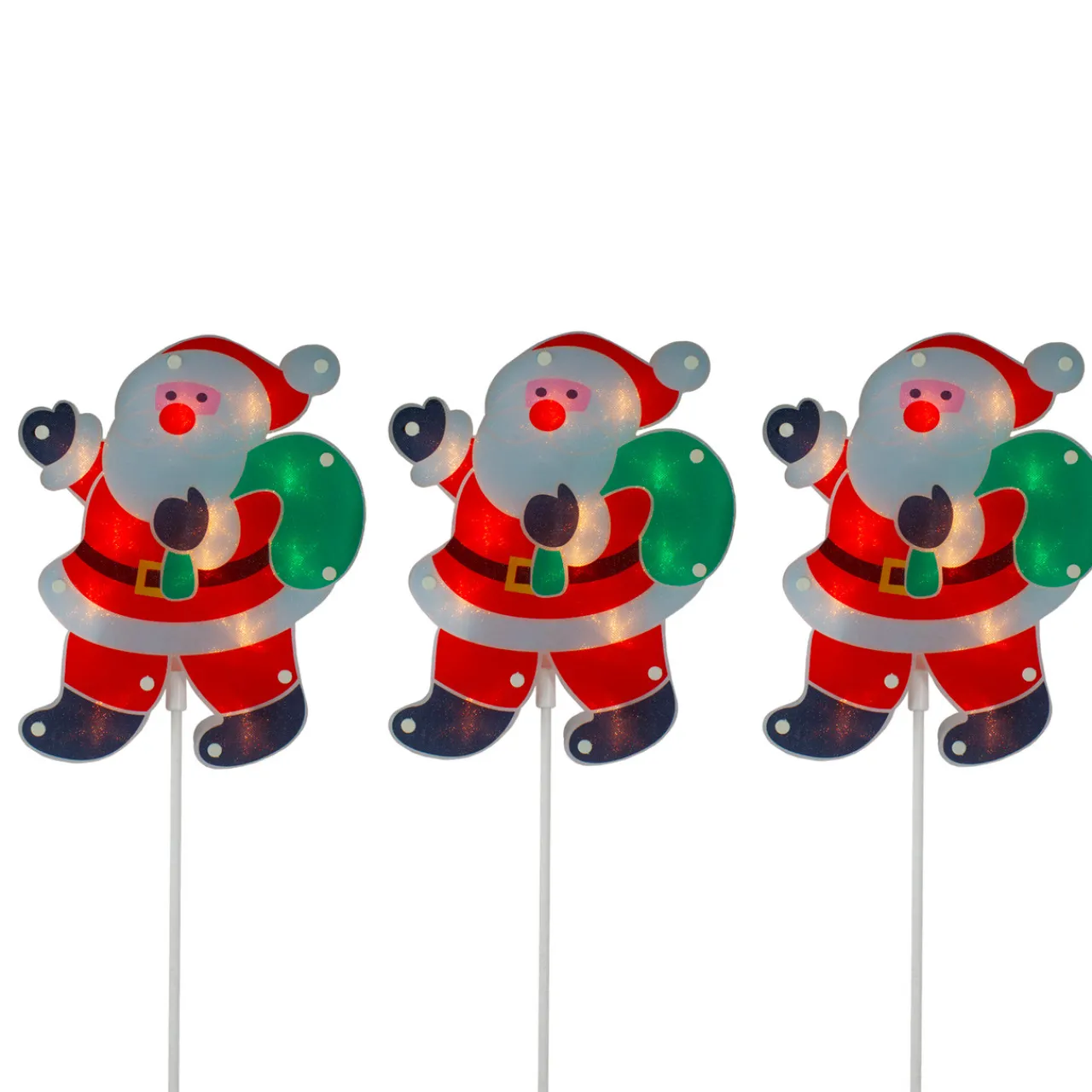 - Set Of 3 Holographic Santa Claus Christmas Pathway Markers