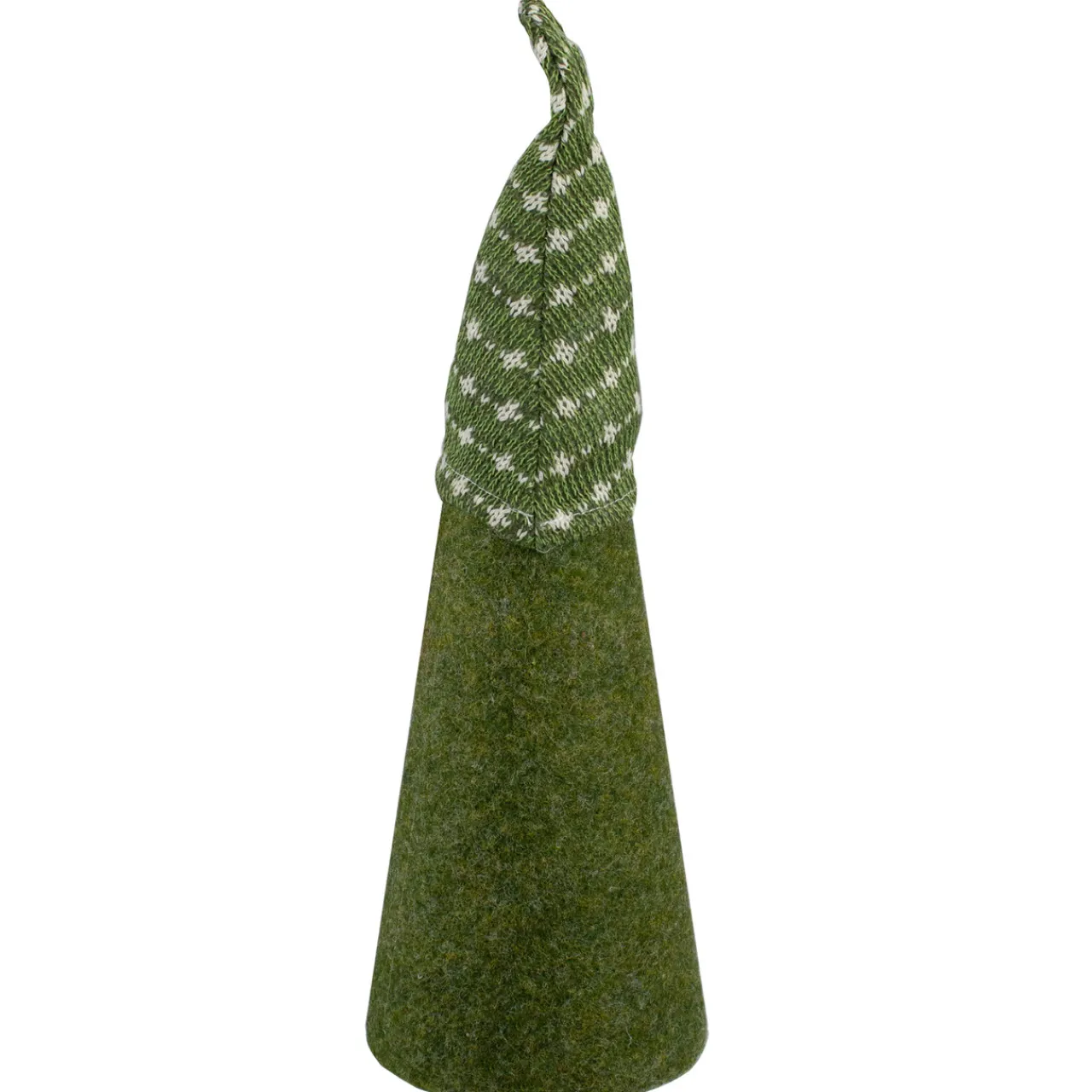 - Features a green dress with a striped pointed winter hat