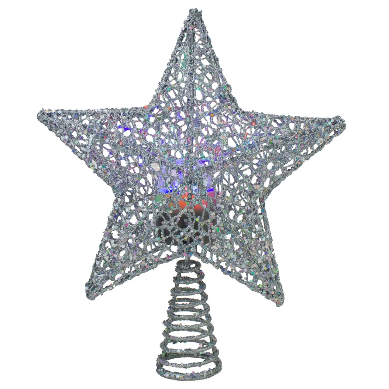 - Silver Star With Rotating Led Projector Christmas Tree Topper