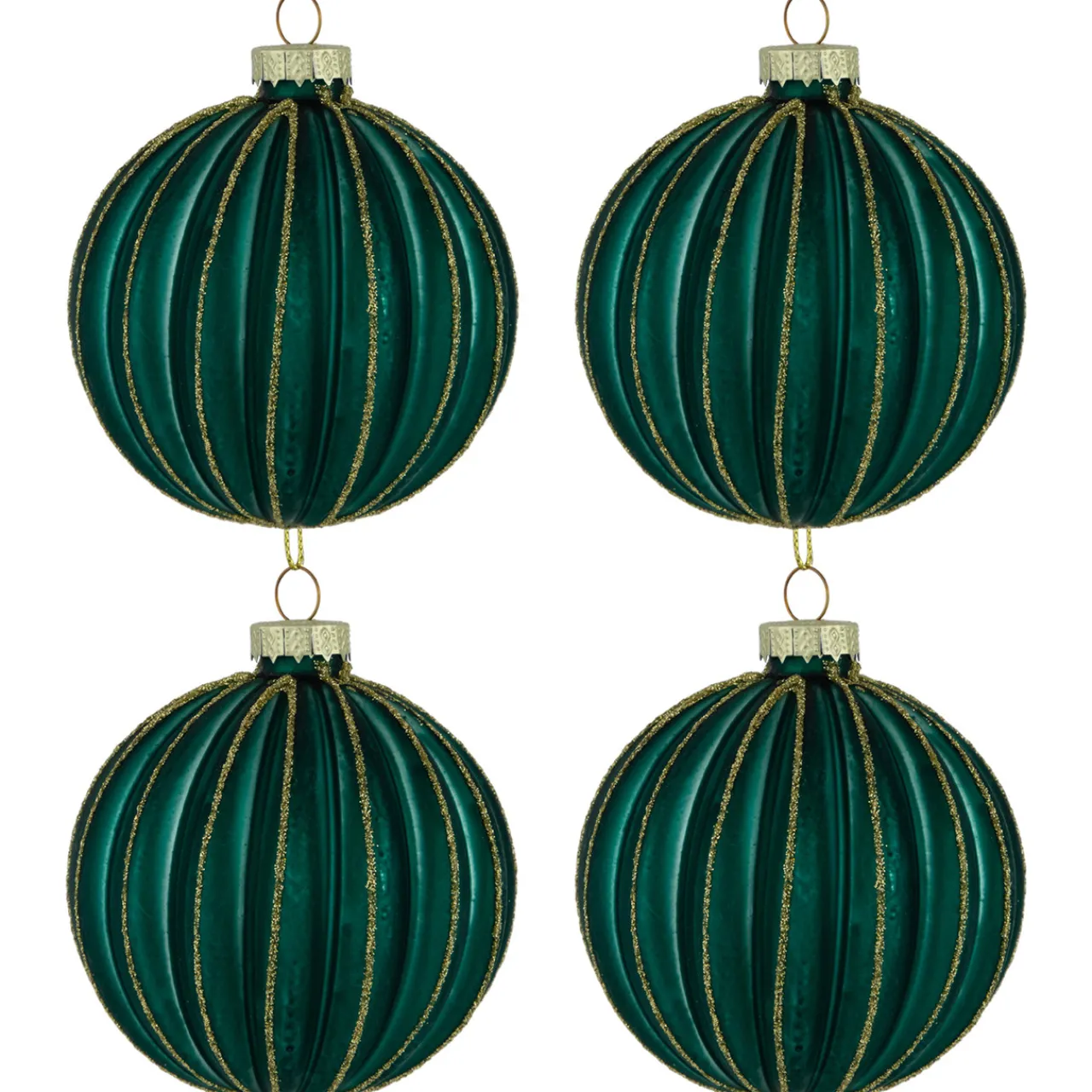 - Set Of 4 Green Glass Christmas Ornaments