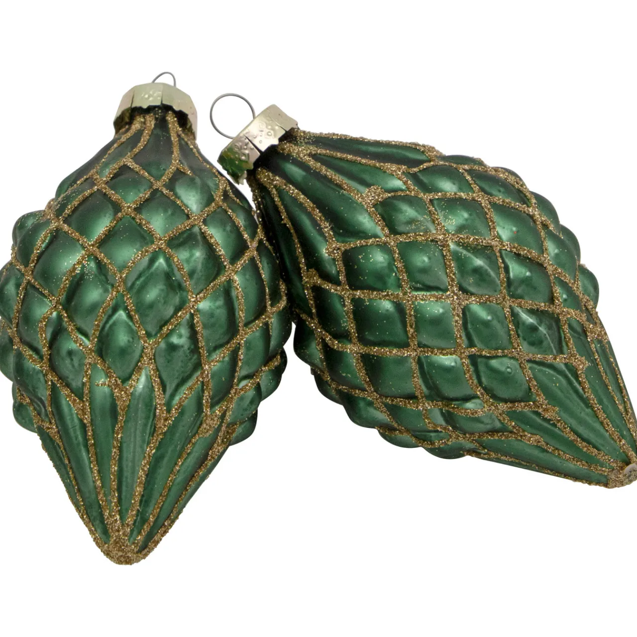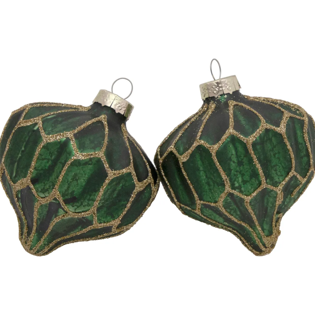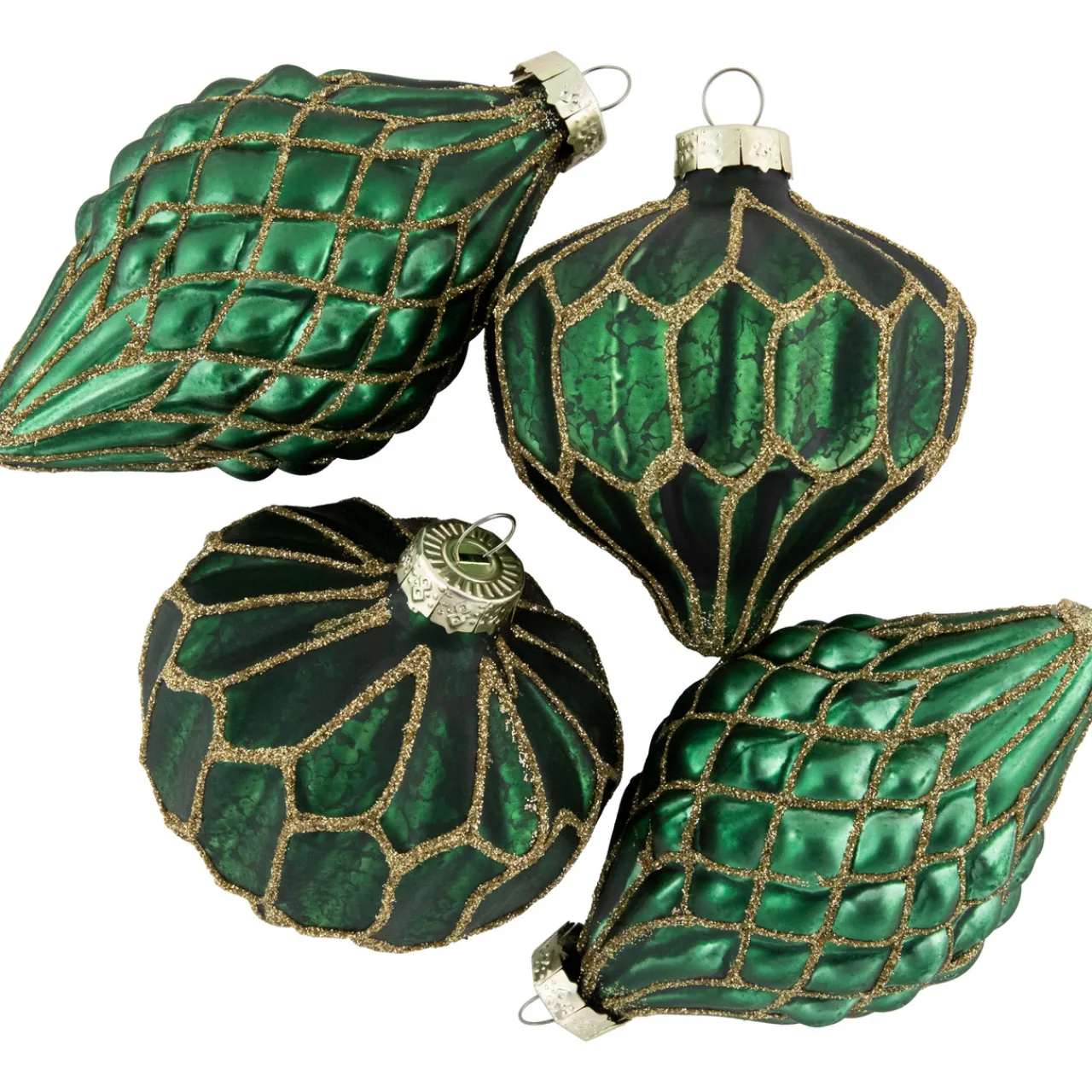 - 4Ct Green Mercury Glass Inspired Christmas Ornament Set