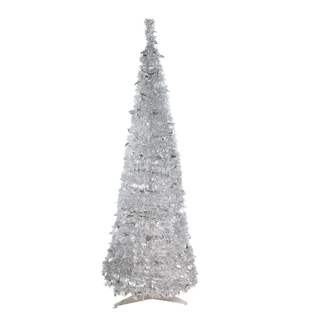 - Prelit Silver Tinsel Artificial Christmas Tree With 250 Clear Mini Lights