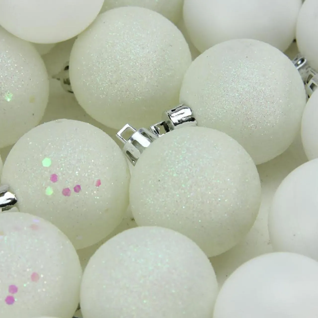 - 96Ct Winter White Hanging Christmas Ball Ornaments