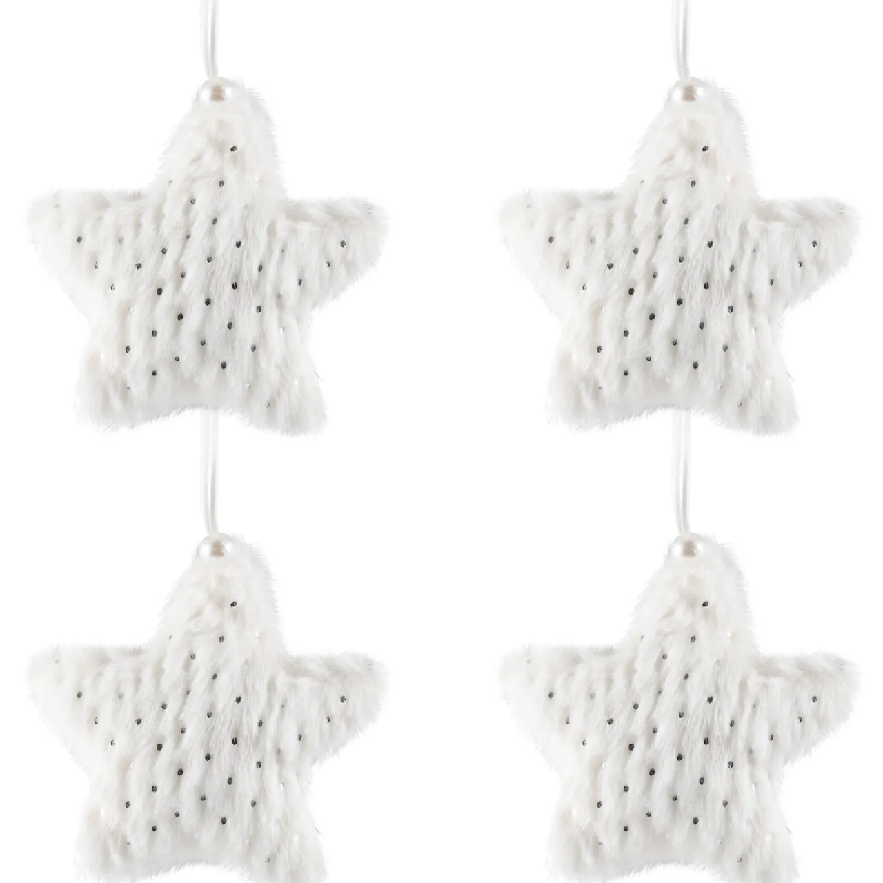 - Set Of 4 Faux Fur Star Christmas Ornaments