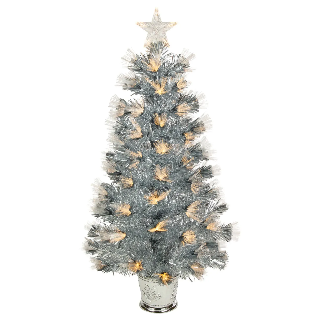 - Pre-Lit Silver Fiber Optic Artificial Christmas Tree