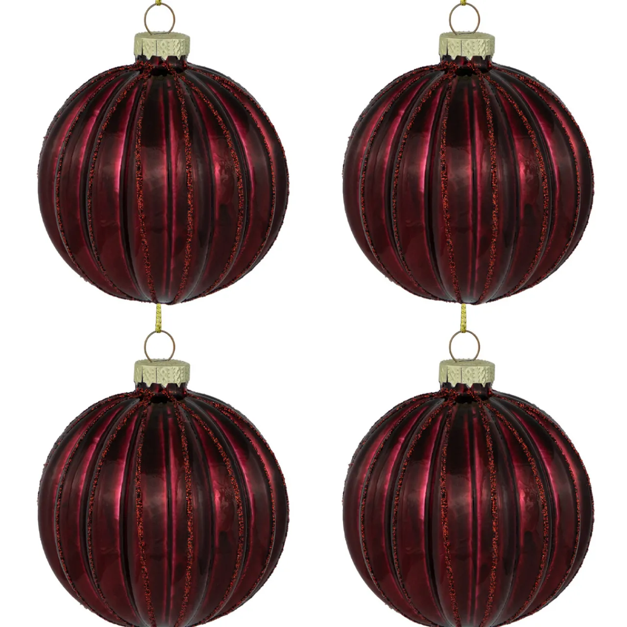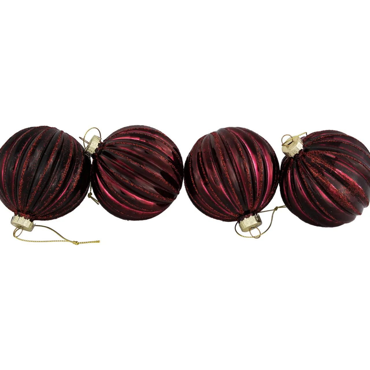 - Set Of 4 Maroon Glass Christmas Ornaments