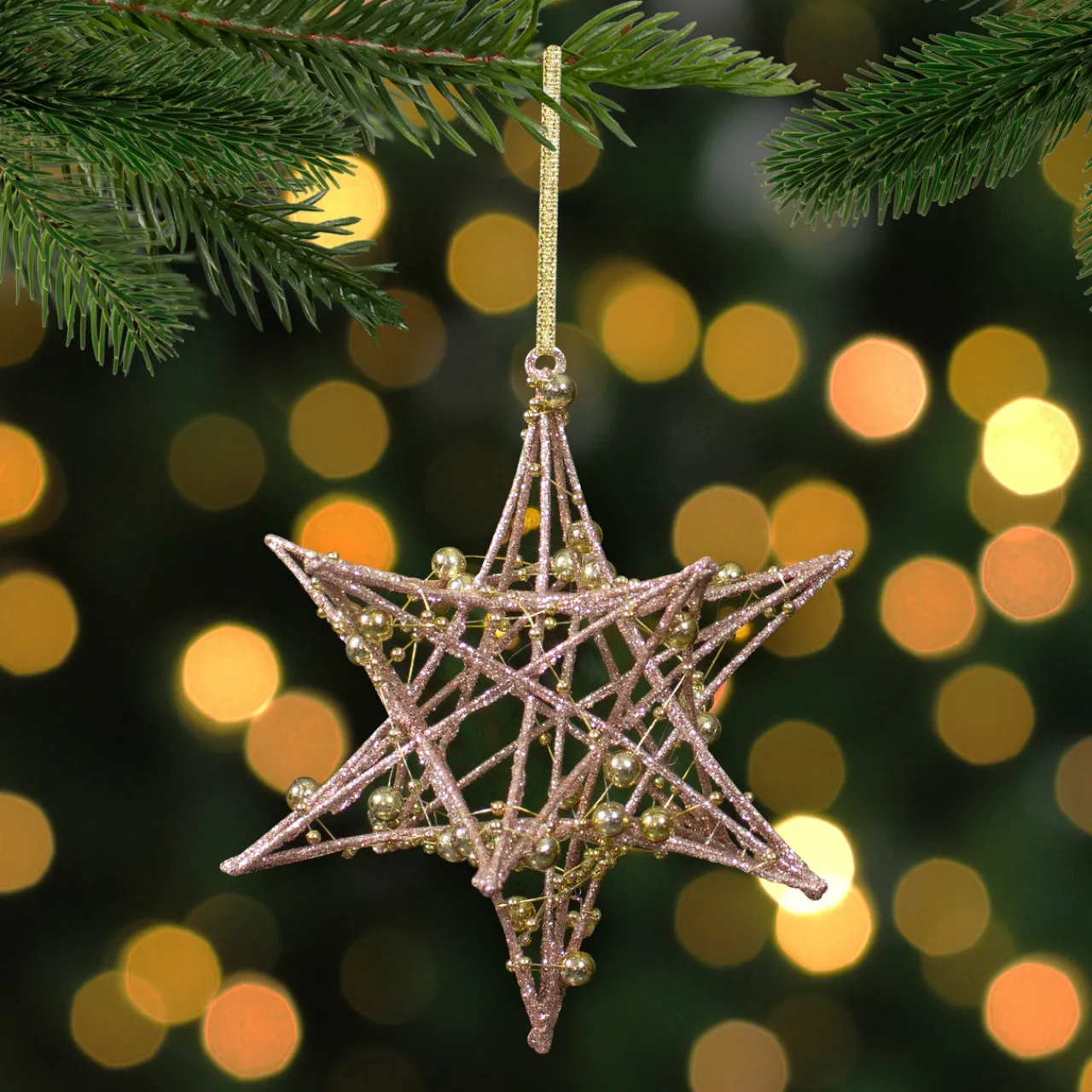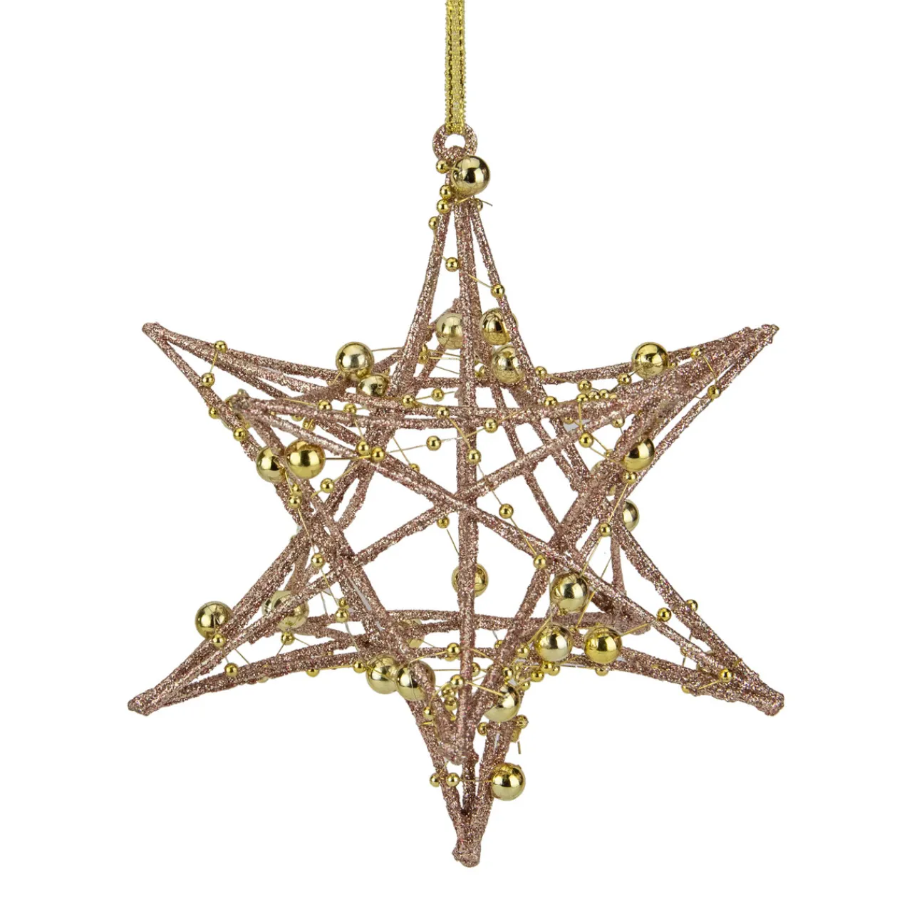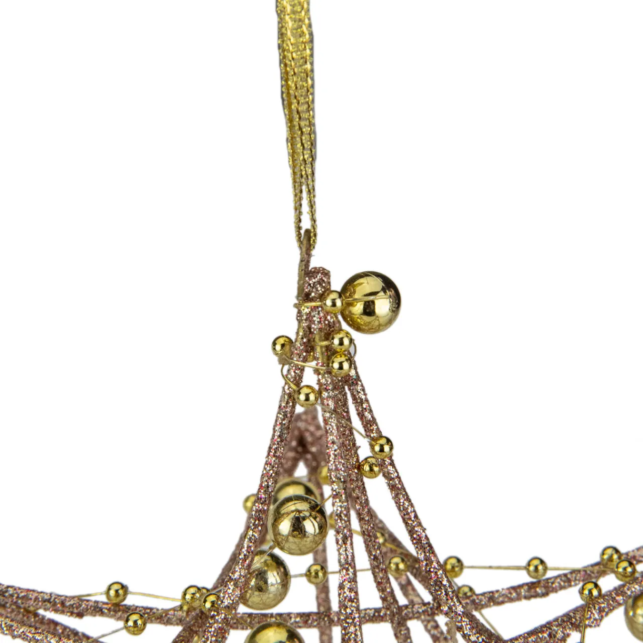 - Features a rose gold glitter finish and gold bead accewnts