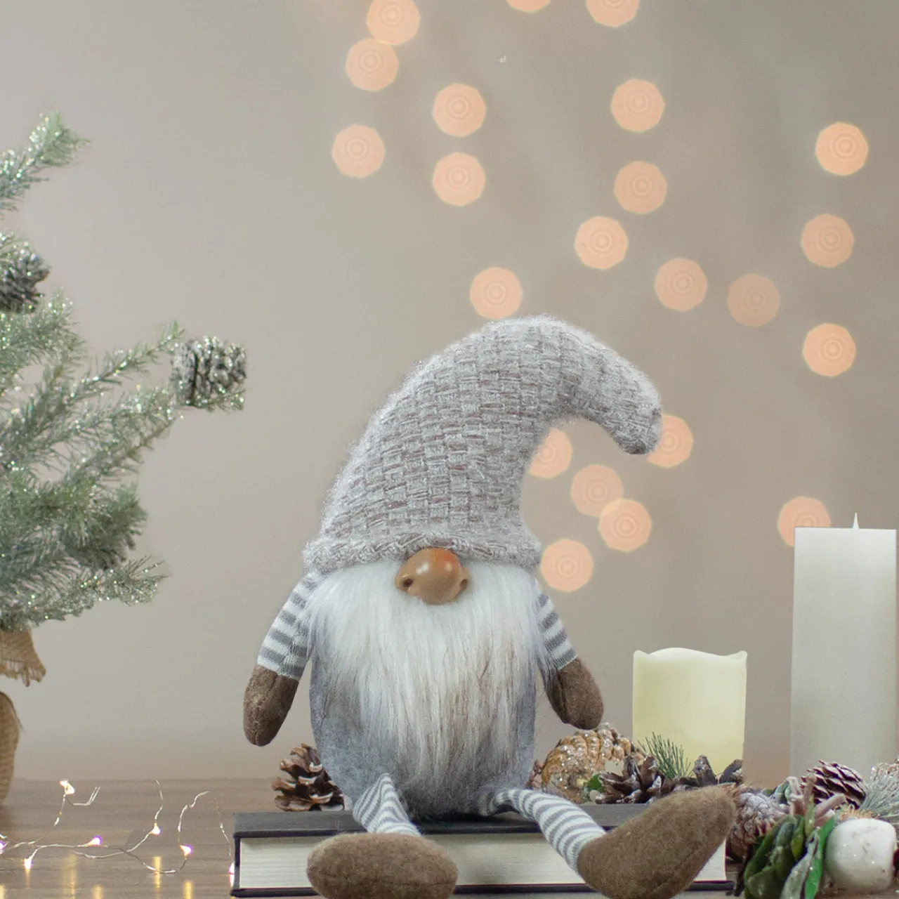 - Sitting Christmas Boy Gnome With A Beige Knit Hat