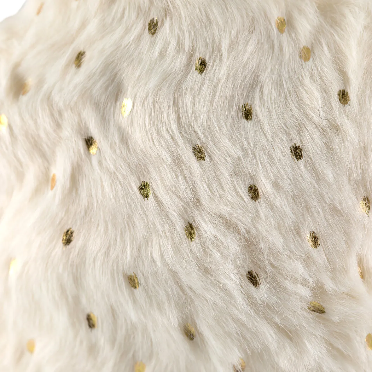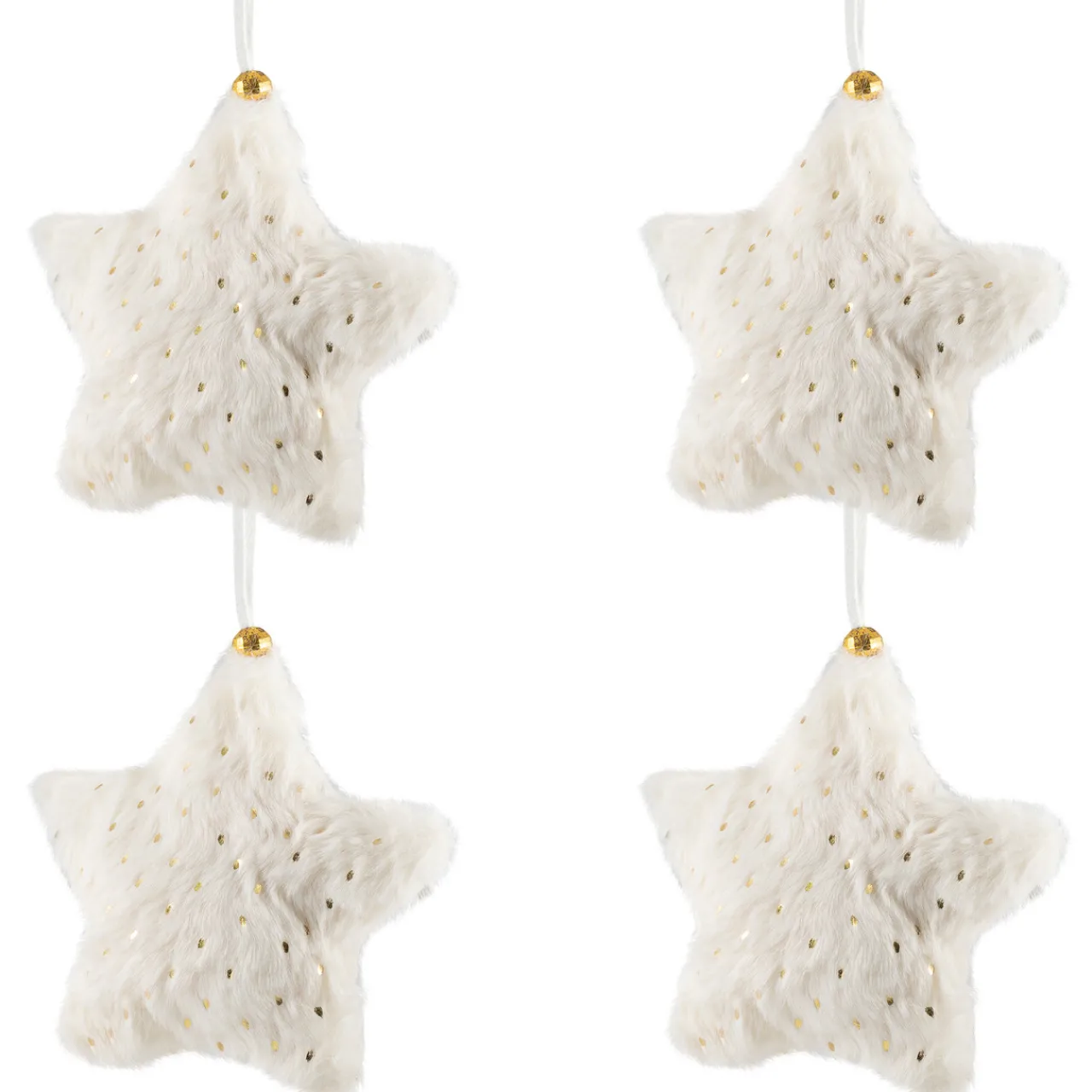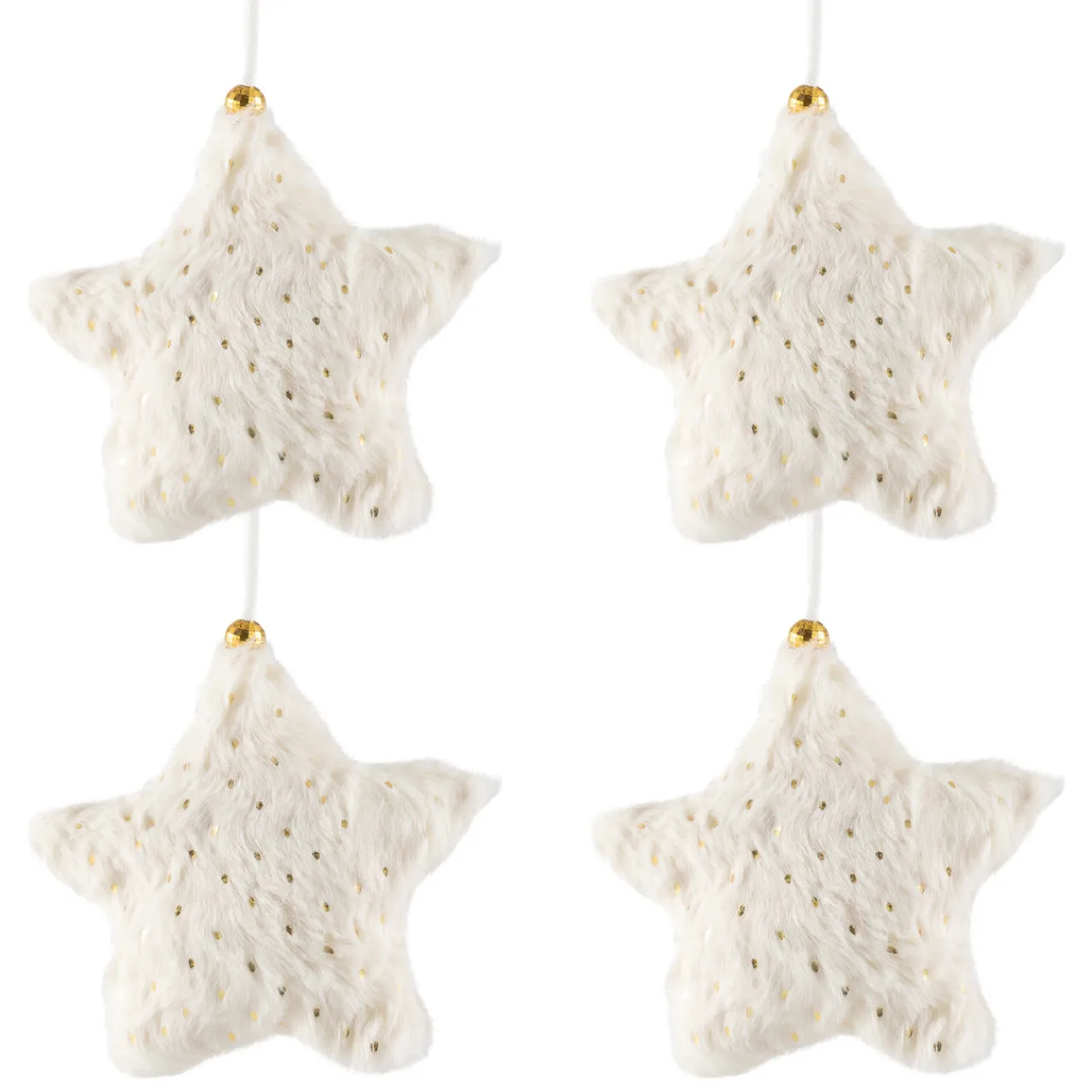- Gold sequins embellish the creamy plush ornaments
