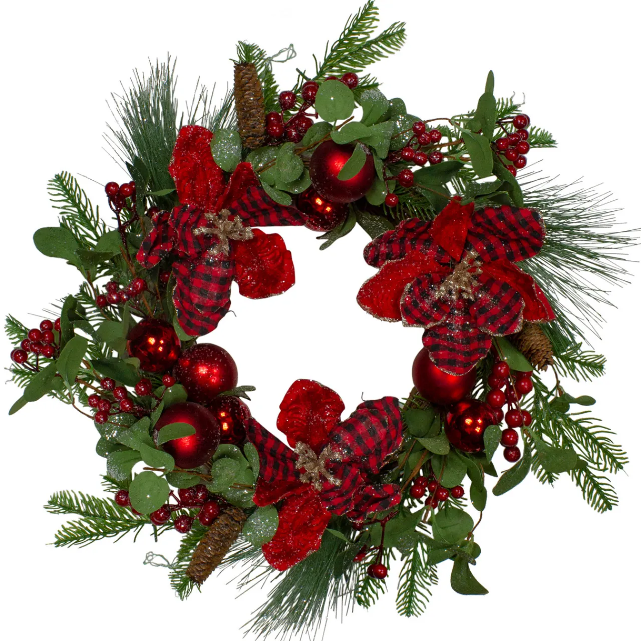 - Artificial Magnolia And Red Berries Christmas Wreath
