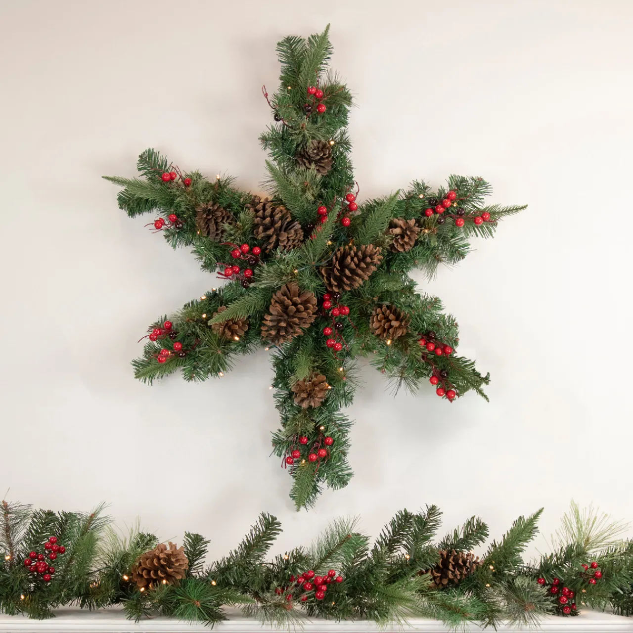 - Decorated Pre-Lit Snowflake Shaped Artificial Christmas Wreath