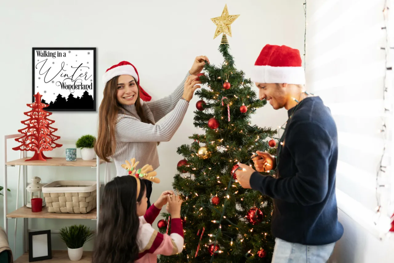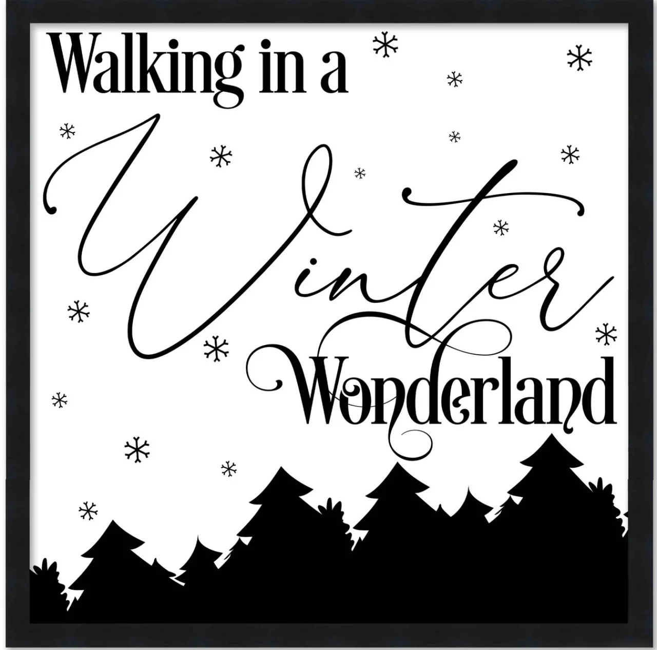 - 15.5″ x 15.5″ Walking in a Winter Wonderland printed sign on musuem quality matte paper with archval inks.