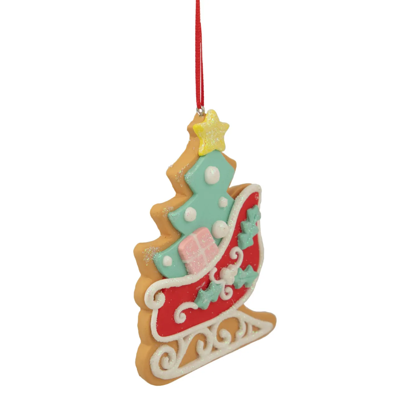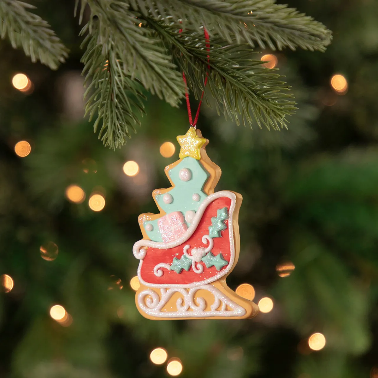 - Features red and green frosting for the sleigh and tree, white piping and glitter
