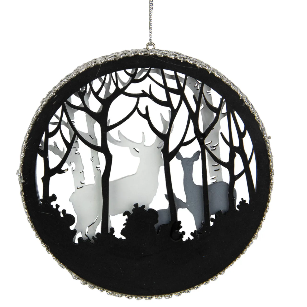 - Features a reindeer family with forest trees