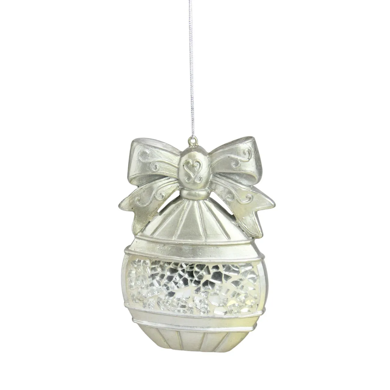 - Mosaic-style glass accents; ready to hang on a silver cord