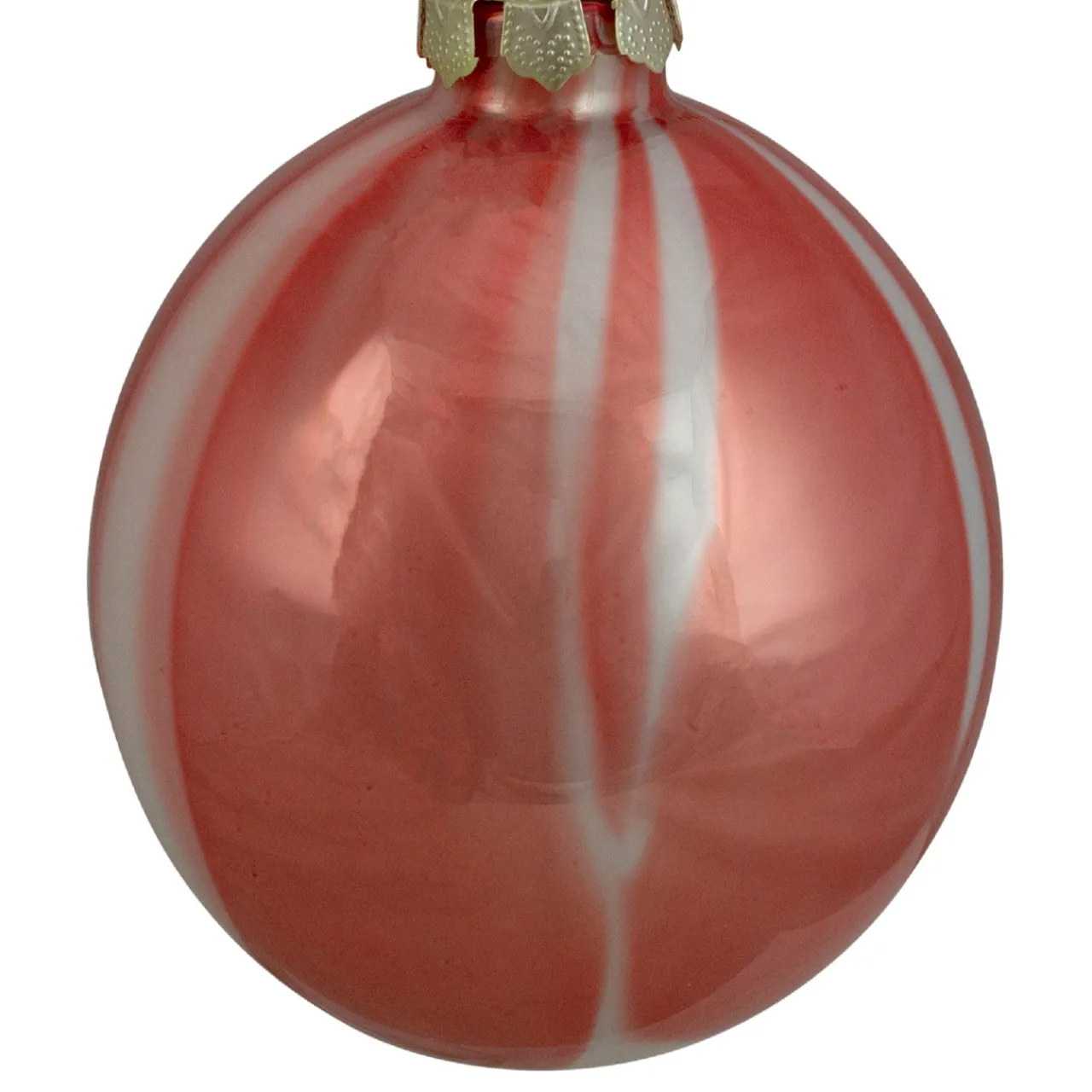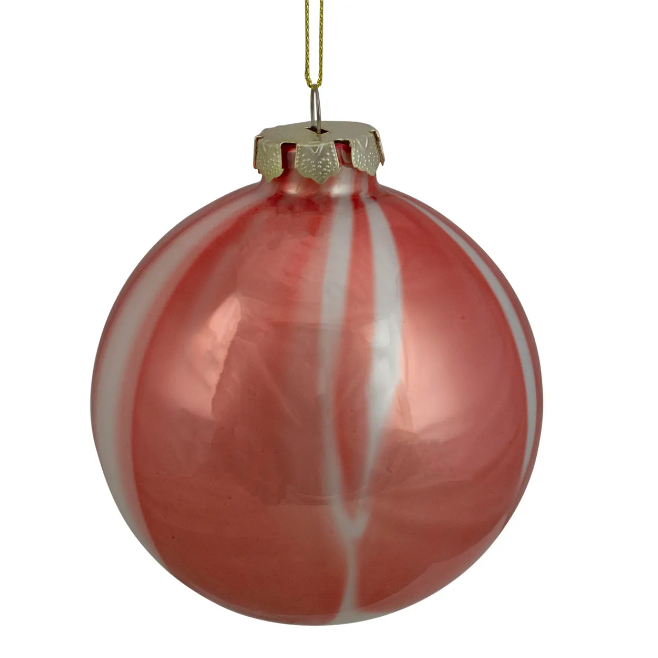 - Marbled Red And White Glass Hanging Christmas Ball Ornament