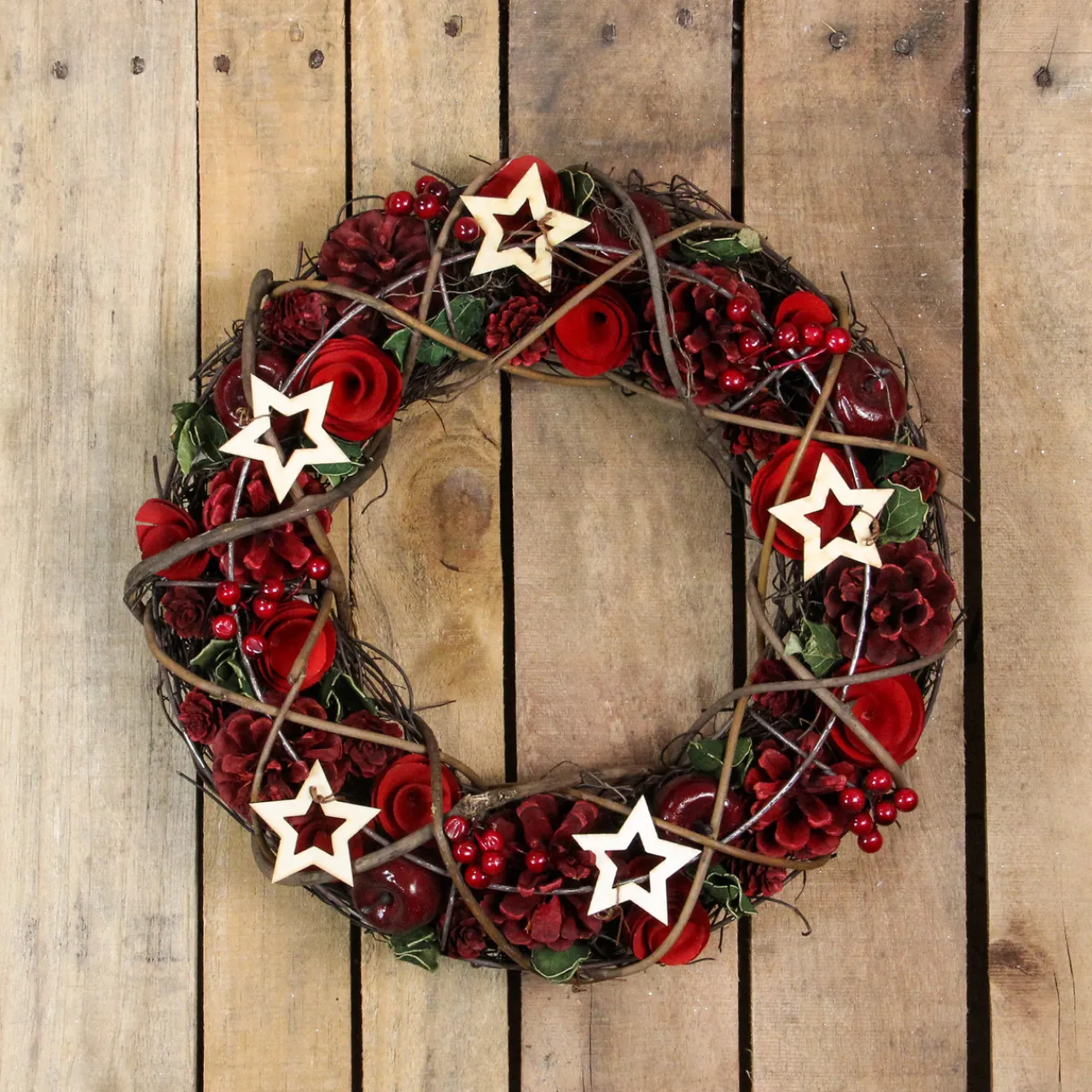 - Wreath measures 13 inches in diameter by 3 inches deep