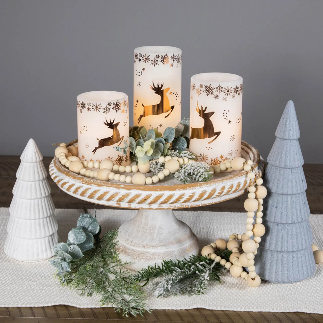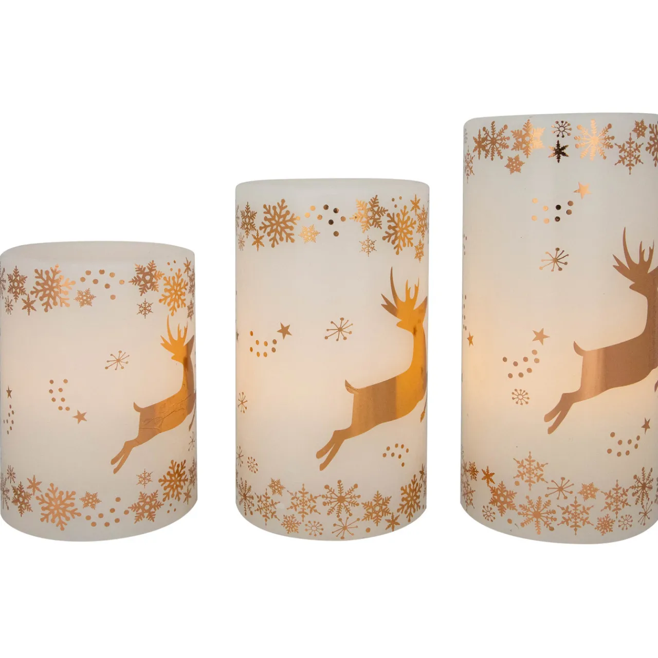 - Set Of 3 Flameless Christmas Pillar Candles