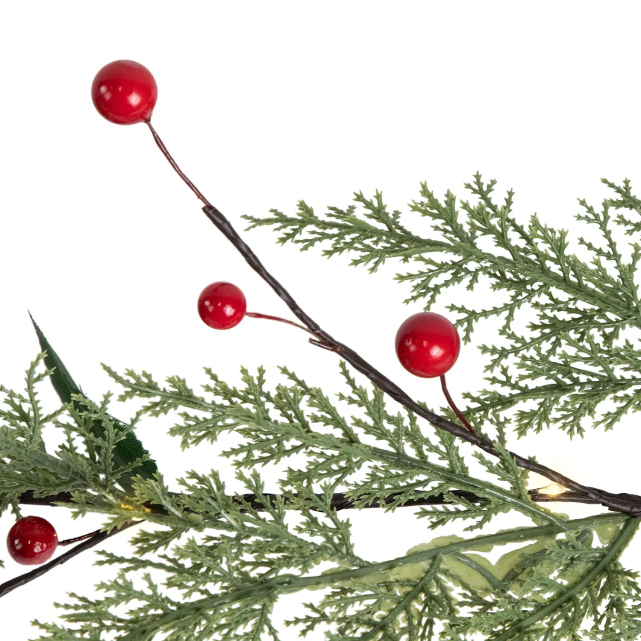 - Red Berry And Pine Leaf Battery Operated Christmas Garland