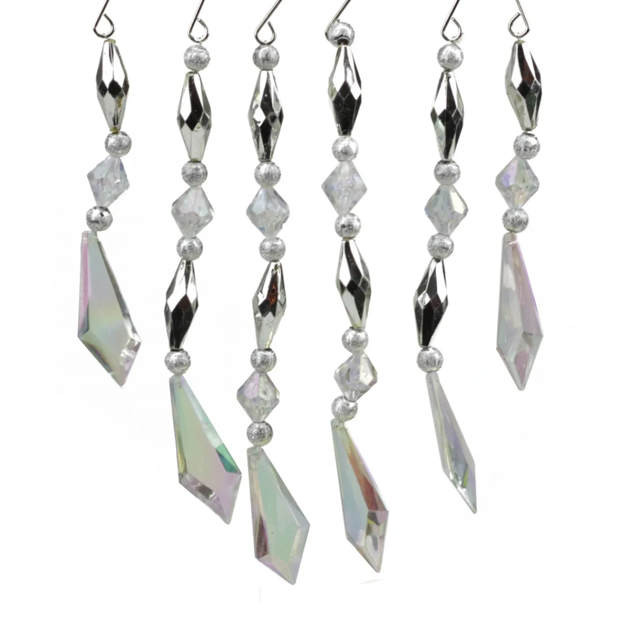 - 6Ct Silver And Clear Faceted Jewel Dangle Ornaments