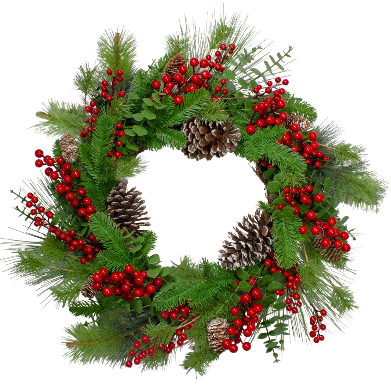 - Holly Berries And Snowy Pinecones Artificial Christmas Wreath
