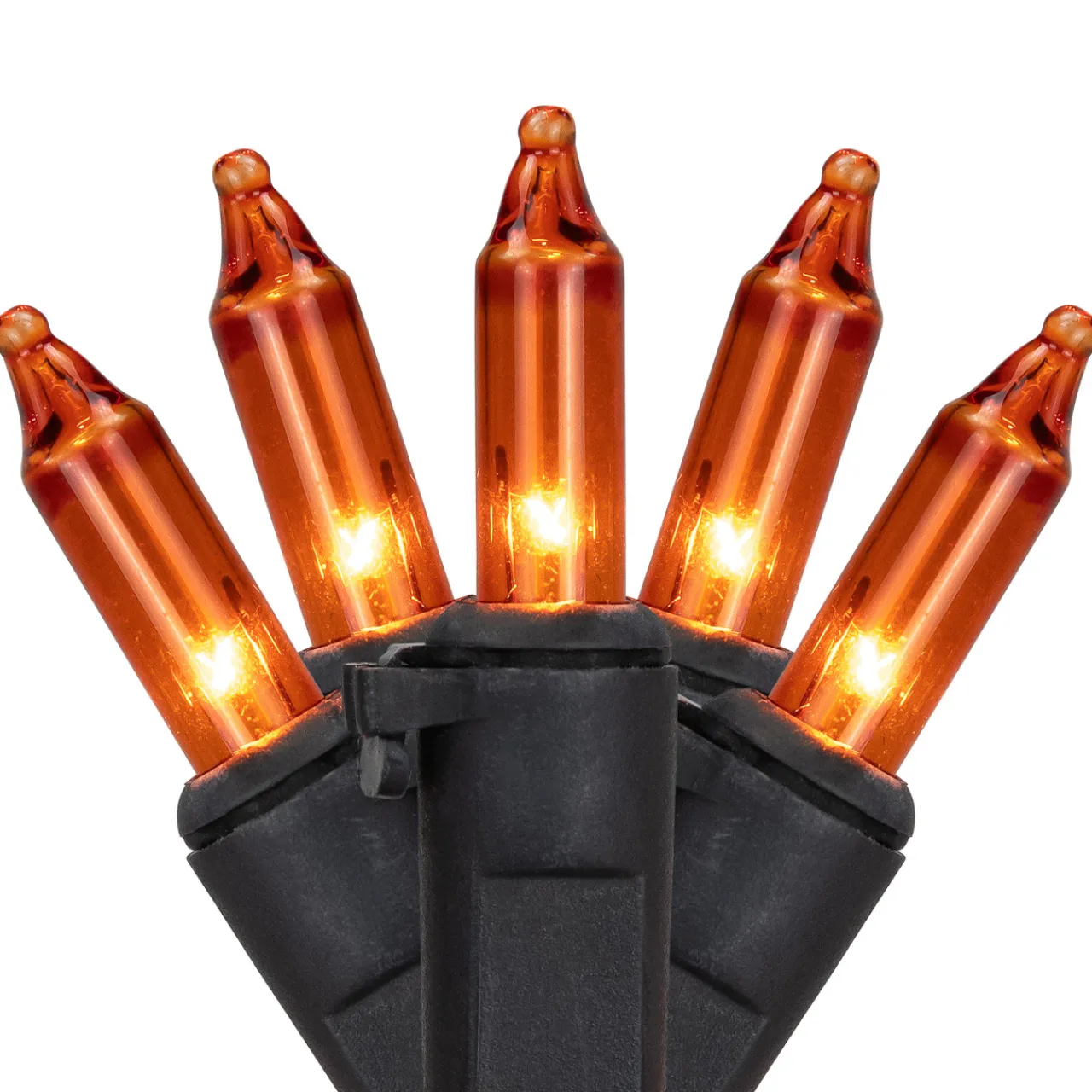 - Set Of 50 Orange Mini Christmas Lights With Black Wire