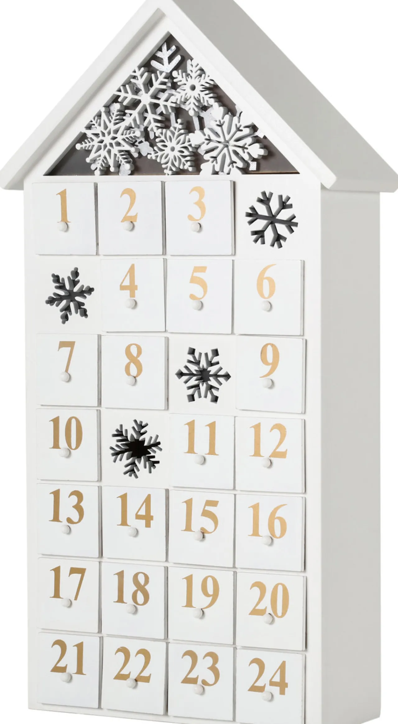 - Radiantly beautiful wooden calendar with LED lighting – With its white snow design this little house is a real eye-catcher. It fits stylishly into every modern interior design style