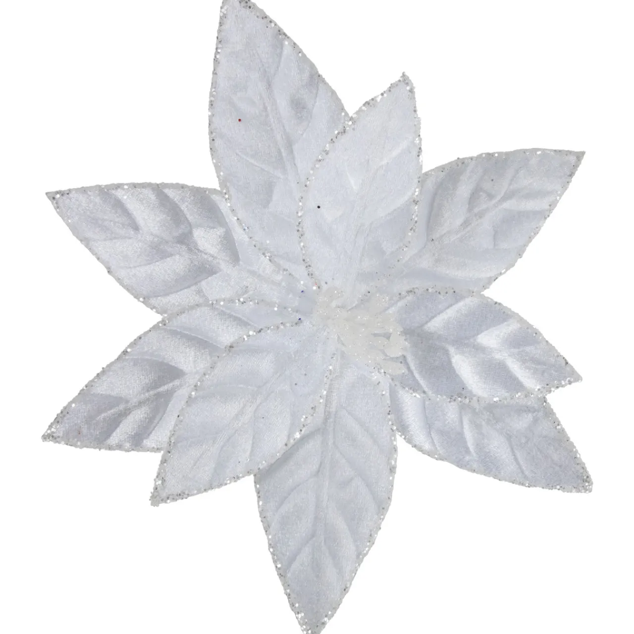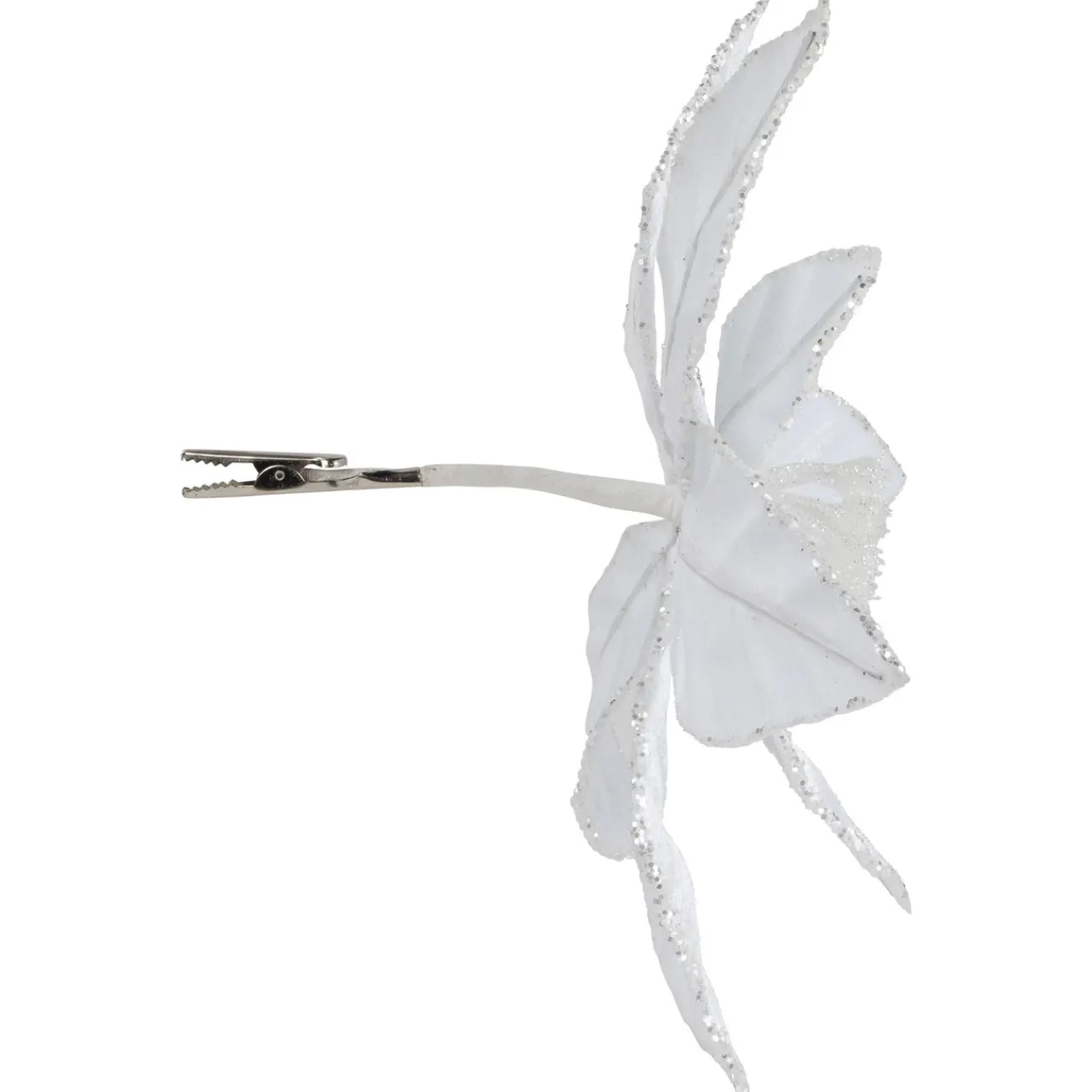 - Snow White Poinsettia Floral Christmas Clip On Ornament